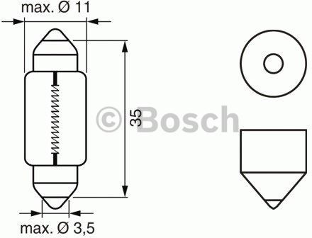 Niemiecka Grupa Bosch - wiodący w świecie dostawca technologii i usług. Innowacyjne produkty i usługi Bosch poprawiają jakość życia i jednocześnie budzą entuzjazm użytkowników. Bosch tworzy technologię, która jest "bliżej nas". Głównymi obszarami działania firmy Bosch w dziedzinie motoryzacji są technologie wtryskowe i elementy mechanizmów napędowych do silników spalinowych, różne rozwiązania dla elektryfikacji mechanizmów napędowych, układy kierownicze, układy hamulcowe, systemy bezpieczeństwa i wspomagania kierowcy. Firma Bosch odpowiada także za ważne innowacje motoryzacyjne, takie jak elektroniczne zarządzanie silnikiem, system przeciwpoślizgowy EPS czy technologia Common-Rail do silników wysokoprężnych. ŻARÓWKA TRUCKLIGHT C5W 5W 24V Numer katalogowy części: 1987302507 BOSCH Najważniejsze informacje Napięcie [V]: 24 Moc znamionowa [W]: 5 Rodzaj lampy: C5W Żarówka z cokołem: SV8.5-8 Obraz obok przedstawia oferowany produkt. Jak upewnić się, czy ta część pasuje? Najpewniejszym sposobem na prawidłowy dobór części jest sprawdzenie numeru części aktualnie zamontowanej w samochodzie. Jeśli znajduje się na niej którykolwiek z numerów podanych poniżej, to produkt z tej oferty z całą pewnością będzie pasować. Numery zamienników ams-OSRAM 6423, CATERPILLAR 003-0230, CATERPILLAR 5W 2040, DAF 1354863, FAUN 99700030230, FAUN EA0936, FRUEHAUF L-SX-0032-002, HEULIEZ 0190250800, HYUNDAI 21EK-10280, IVECO 0190 250800, IVECO 4451 42103, MAN 11028771, MAN 81 25901 7040, MAN ZF259017040, MERCEDES-BENZ 140 000 18 34, MERCEDES-BENZ A 140 000 18 34, NEOPLAN 1102 877 1, NEOPLAN 1510.305.00, PHILIPS 13844, SOLARIS 2615-210-021, TEREX 0353506, TEREX 1814000008, TEREX 3600136106, TEREX 50737299, TEREX 8301299, TEREX 94750737299, TUNGSRAM 7552, VOLVO 14210900, VOLVO 558925, VOLVO 7019926, VOLVO MBU242, VOLVO T07HEL006