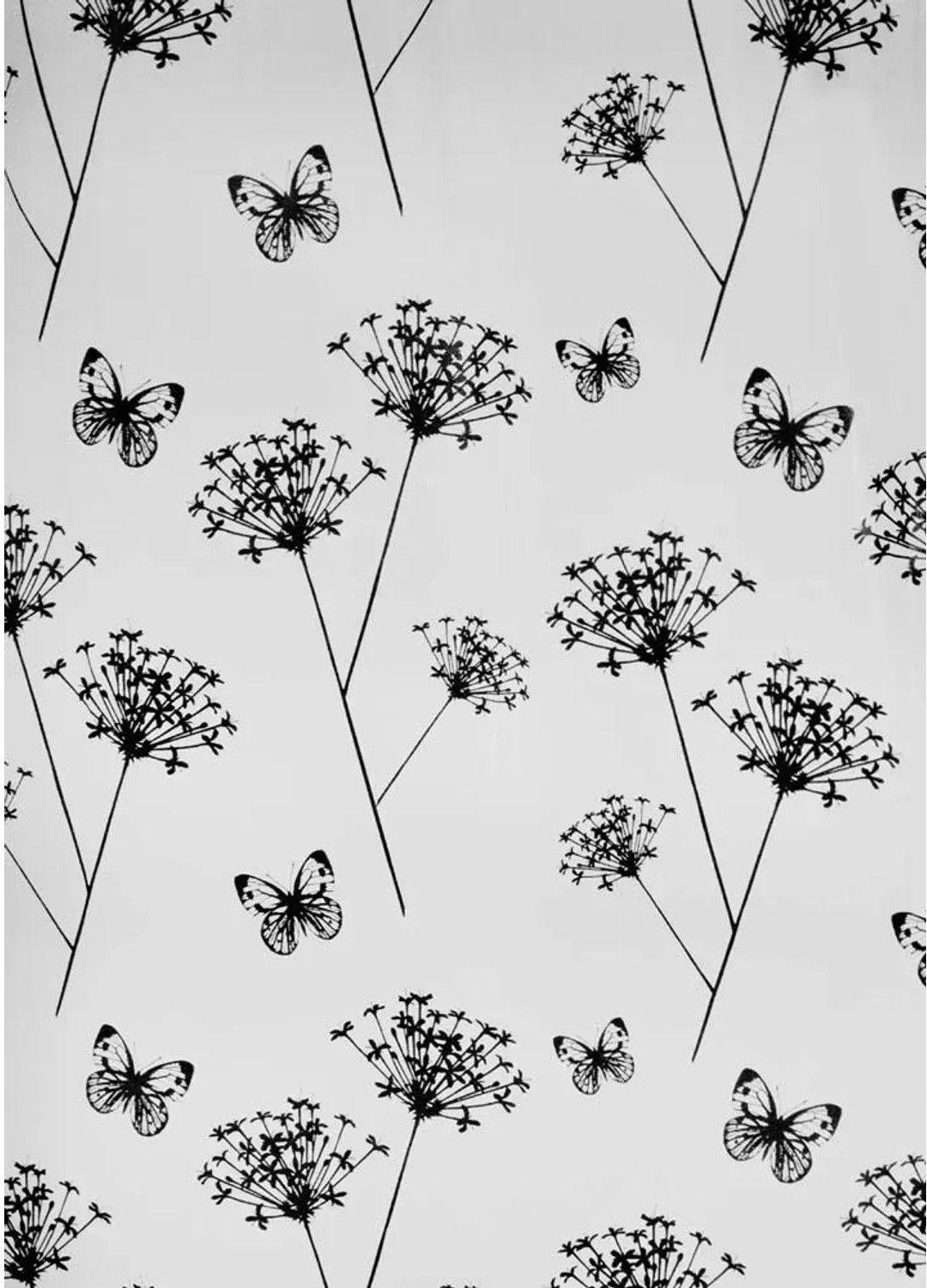 Zasłonka prysznicowa Basic Flos biała Zasłonka prysznicowa z kółeczkami o wymiarach 200 x 180 cm. Wykonana z materiału PEVA. Wzór w polne kwiaty i motyle.