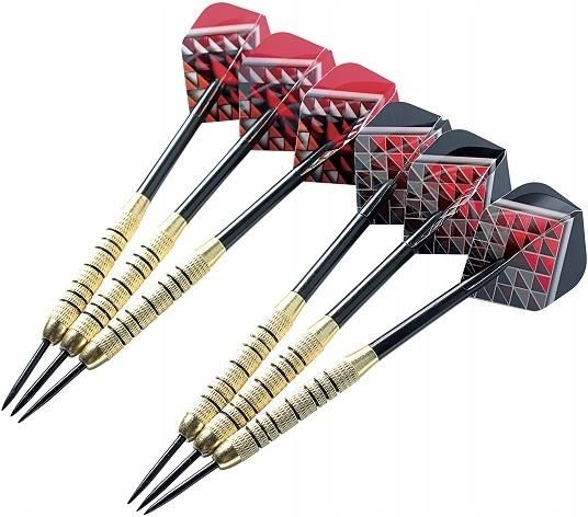 Mosiężne rzutki do gry w darta z ostrymi grotami. Świetnie sprawdzą się dla początkującego gracza, szczególnie na prezent. Zestaw zawiera: 2 kpl. mosiężnych lotek (6 sztuk) 2 kpl. piórek (+2 kpl. zapasowe) 2 kpl. plastikowych shaftów (+2 kpl. zapasowe) Parametry barreli (metalowych części): Waga: …