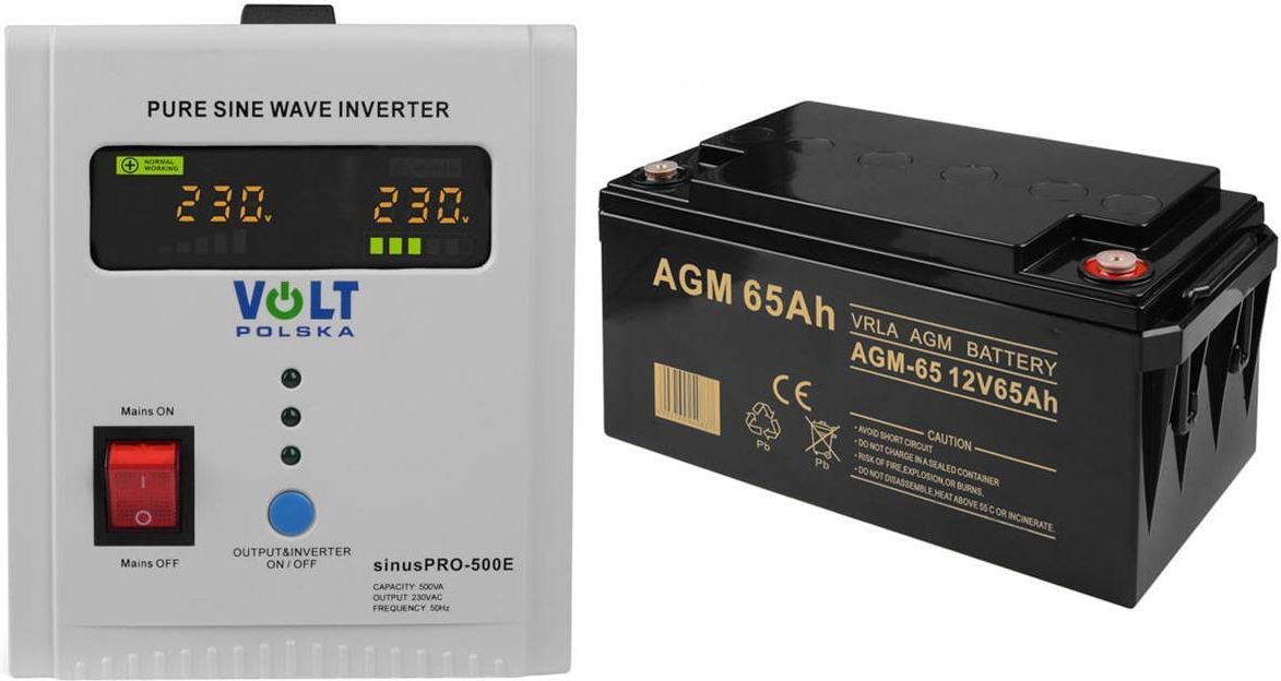 Zestaw zasilacz awaryjny Volt Sinus Pro 500 E 500VA/350W + akumulator Volt VRLA AGM 12V 65Ah Sosnowiec