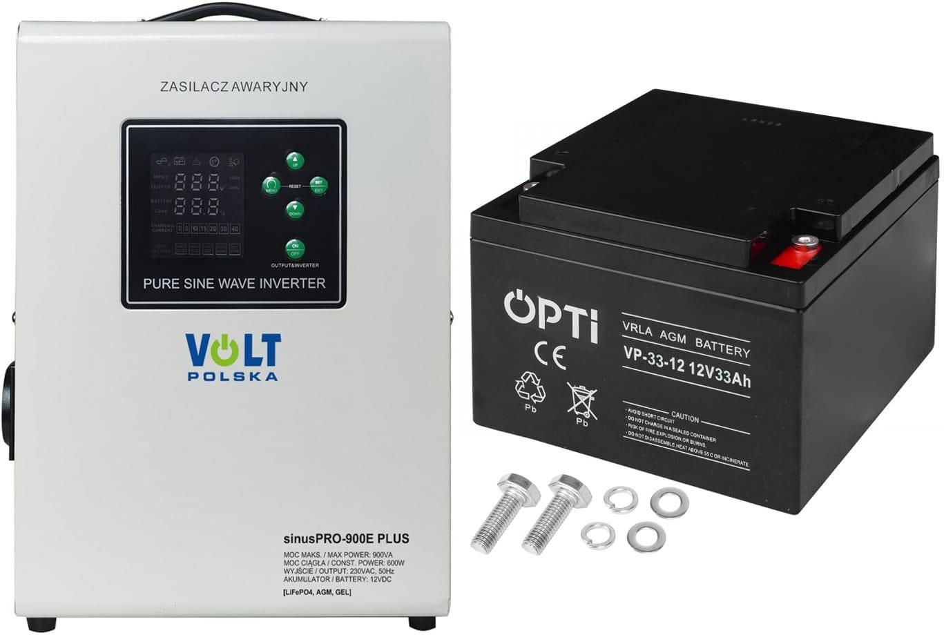 Zestaw: zasilacz awaryjny Volt Sinus Pro 900E PLUS 900VA/600W + akumulator Volt OPTI VRLA AGM 12V 33Ah Sosnowiec