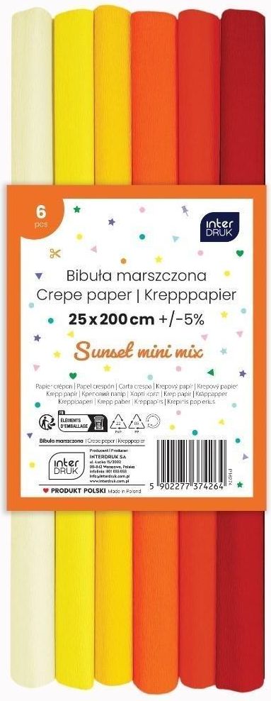 Bibuła marszczona mix mini 6 Sunset 200x25cmEAN: 5902277374264