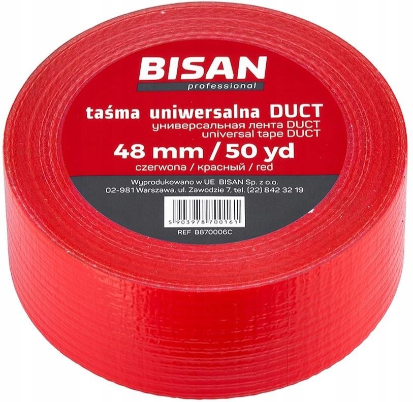 Bisan Taśma Uniwersalna Czerwona Duct 48mmx50Yd B870006C Śrem