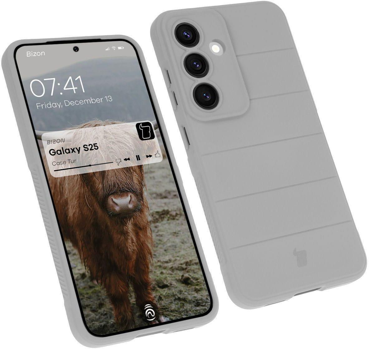 Bizon Case Tur Do Samsung Galaxy S25 Wersja kolorystyczna: Light Grey (jasnoszara) Materiał: TPU Pancerny design Ochrona przed zarysowaniami i zabrudzeniami + amortyzacja w razie upadku Wzmocnione narożniki Podwyższone krawędzie Wyściółka z mikrofibry Łatwy montaż i demontaż Dedykowane wycięcia na obiektywy Zintegrowane osłony na przyciski Kompatybilność z ładowaniem indukcyjnym W środku etui mogą znajdować się przebarwienia. Nie wpływają one na wygląd zewnętrzny obudowy. Przedmiotem sprzedaży jest samo etui, pozostałe akcesoria widoczne na zdjęciach służą jedynie przedstawieniu jego funkcjonalności. Kod produktu: 5904665323595 Kod producenta: BCTGALS25LGY Etui kompatybilne ze szkłami* o wymiarach mniejszych niż (dług./szer.): 14,50 x 6,84 cm * Bolączki z dobraniem pasującego szkła? Wybierz Bizon Glass Clear ❤️! Pancerna ochrona Etui marki Bizon z serii Tur to inspirowana naturą, elastyczna obudowa, która świetnie sprawdzi się w codziennym użytkowaniu i zapewni Twojemu smartfonowi wysoką ochronę przed zarysowaniami, zabrudzeniami oraz w razie upadku! Etui wyróżnia subtelne logo w kształcie głowy bizona. Mocna konstrukcja Pokrowiec został wykonany z giętkiego, termoplastycznego poliuretanu, dzięki czemu montaż i demontaż nie sprawi Ci większych problemów. Etui cechuje niewielka grubość wynosząca zaledwie 2 mm, a jego dodatkowym atutem jest ukryta w środku warstwa z mikrofibry, która dodatkowo ochroni telefon w razie upadku. Wyżłobienia na pleckach nie tylko ładnie wyglądają, ale zachowują się także jak niewidzialne poduszki powietrzne i amortyzują w razie wstrząsów czy upadku! Aby zapewnić Twojemu telefonowi najlepszą ochronę, takie samo rozwiązanie zastosowano również w rogach obudowy. Pewny chwyt Miałeś kiedyś do czynienia z etui, które dosłownie samo wypadało z rąk? Z Turem to zupełnie inna bajka! Obudowa telefonu została zaprojektowana z myślą o lepszym chwycie. Teksturowane boki pozwolą Ci na pewniejszy i stabilniejszy chwyt urządzenia, a gdyby i tak zdarzyło Ci się je niefortunnie upuścić ekranem do dołu, to podwyższone krawędzie wokół niego nie pozwolą, aby bezpośrednio zderzyło się z podłogą! Uniesione brzegi znajdują się także wokół wyspy aparatu, co w połączeniu z dedykowanymi wycięciami na obiektywy tworzy podwójną ochronę dla aparatu. Swobodny dostęp Tur to nie tylko solidna konstrukcja, ale także gwarancja płynnego działania przycisków, które będą dodatkowo chronione dzięki zintegrowanym osłonom! Oprócz idealnego dopasowania do kształtu telefonu etui posiada także wszelkie niezbędne wycięcia i zapewnia pełen dostęp do portów. A jeśli wolisz ładować bezprzewodowo, to możesz to robić bez ściągania obudowy, ponieważ pokrowiec doskonale współgra z ładowaniem indukcyjnym (dotyczy modeli wyposażonych w tę funkcję).