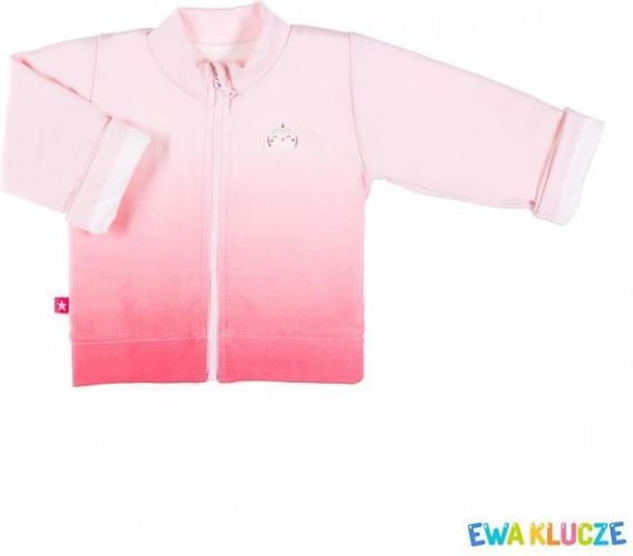 Bluza wykonany z delikatnej, mięciutkiej bawełny, starannie uszyta. Przód zdobi delikatna naprasowanka. Posiada zamek przez całą długość pozwalający na łatwe przebranie dziecka. Do produkcji używane są tylko wysokiej jakości dzianiny bawełniane z surowców badanych pod względem bezpieczeństwa dla dziecka.