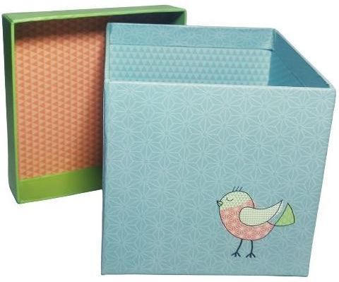 Ozdobne pudełko z pokrywką wykonane z grubego kartonu.Wzór - ptaszkiFormat - 140 x 140 x 130 mm