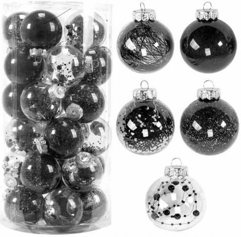 ZESTAW BOMBEK CHOINKOWYCH 30 szt. SYSD1688-061 CZARNE Komplet zawiera 10 różnych rodzajów bombek. Bombki mają ok. 8 cm wysokości (z uszkiem). Dekoracje posiadają różną strukturę i wykończenie, dzięki czemu urozmaicą wygląd drzewka świątecznego. Nasz zestaw idealnie sprawdzi się w domach z dziećmi …