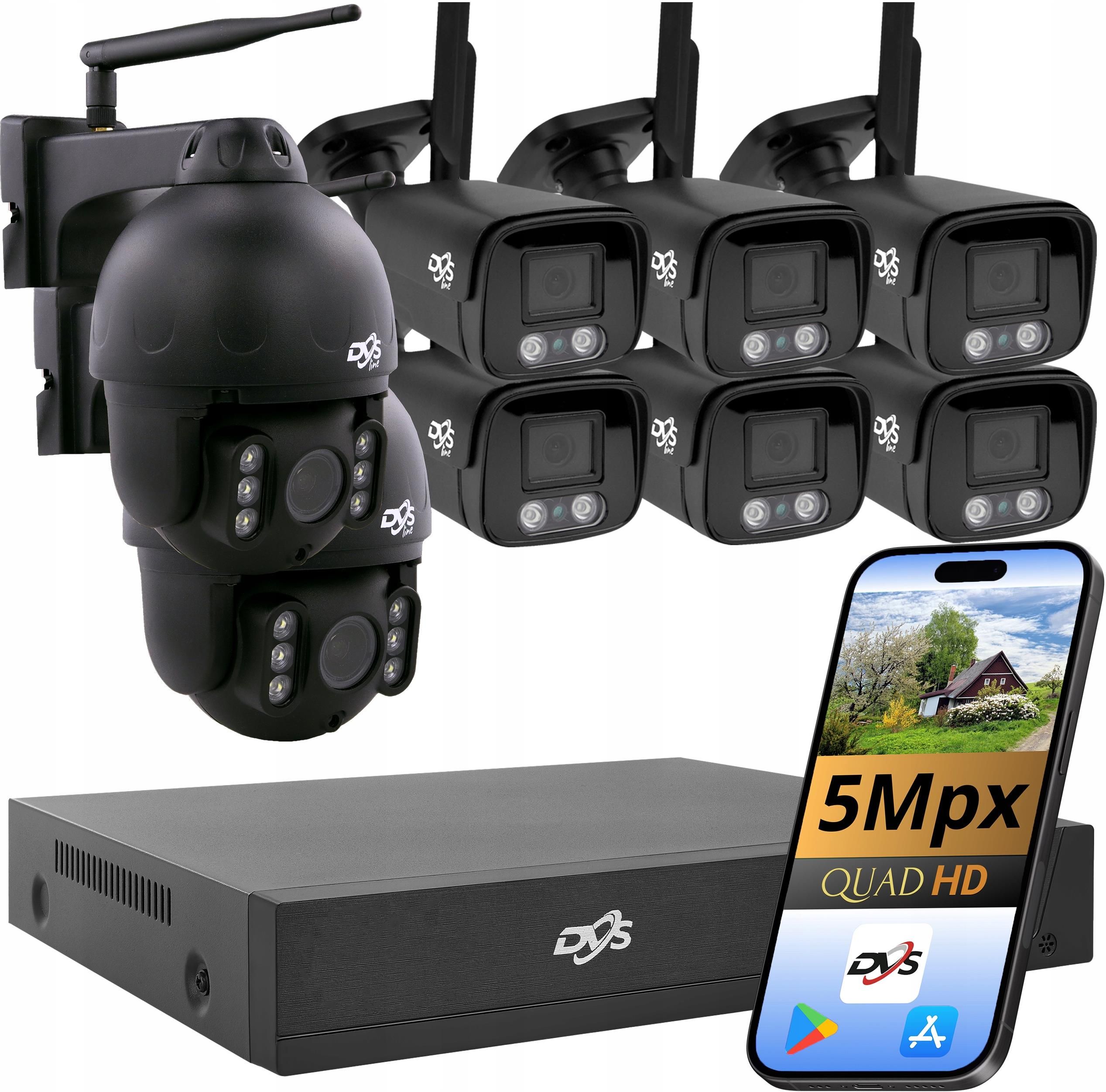 Dvs Czarny Zestaw Kamer Wifi 6 Kamery 2 Obrotowa Zewnętrzne Do Domu Śrem