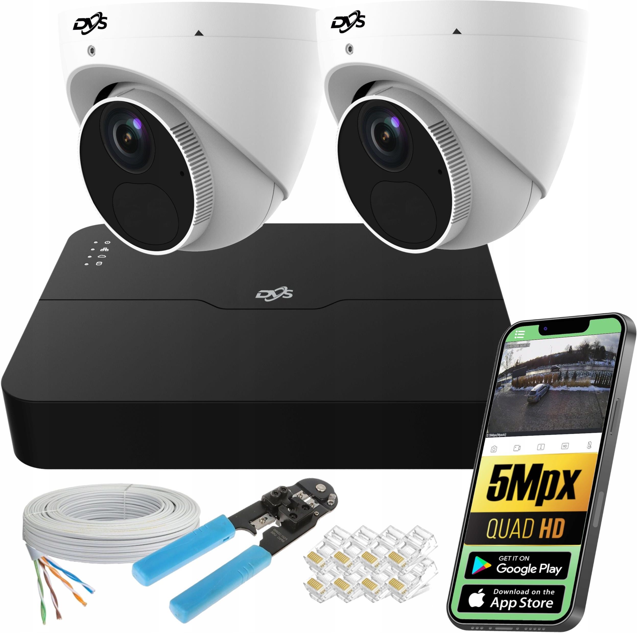 Dvs Zestaw Do Monitoringu 2 Zewnętrzne Kamery Poe Ip 5Mpx Kopułka Mikrofon Śrem