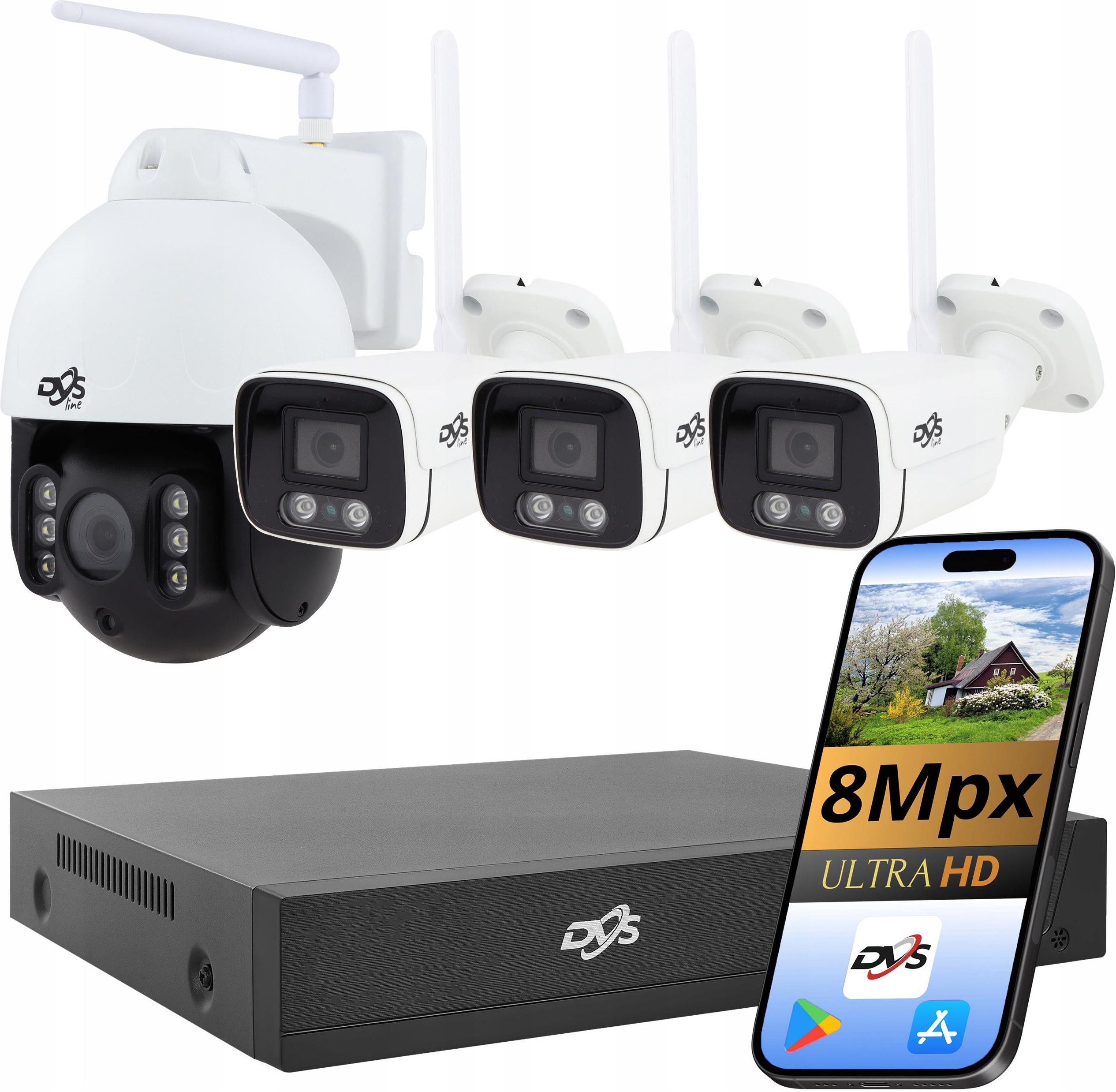 PROFESJONALNY ZEWNĘTRZNY ZESTAW WIFI MONITORING DO DOMU Stworzony z myślą o osobach poszukujących produktów wysokiej jakości w przystępnej cenie. W zestawie znajdziesz solidne kamery bezprzewodowe od polskiej marki DVS. Zestaw zaprojektowaliśmy wysłuchując potrzeb użytkowników. Dzięki kompaktowej budowie i wytrzymałym elementom zapewniają one łatwość i komfort użytkowania. Kamery idealnie nadają się do zastosowań zarówno wewnętrznych, jak i zewnętrznych. Szukasz sprawdzonego i trwałego monitoringu na lata za rozsądne pieniądze? Chcesz sam zamontować zestaw i nie masz żadnej wiedzy z zakresu CCTV Nie masz możliwości położenia przewodów? Nie chcesz przepłacać za funkcje, których nie wykorzystasz? Mamy coś co spełni wszystkie Twoje oczekiwania! Zamów i sprawdź jakość oferowanych zestawów. ____________________________________ DLACZEGO MONITORING DVS ??? Ochrona obiektu, który jest dla nas ważny, nie musi być od razu związana z wysokimi wydatkami rzędu kilku tysięcy złotych. Dążymy do oferowania rozwiązań, które zapewniają optymalne parametry w przystępnej cenie dla klientów, którzy chcą zabezpieczyć swój dom, sklep, biuro lub garaż. Najważniejsze cechy zestawu Pogląd zdalny z każdego miejsca na świecie Aplikacja na telefon w języku polskim Bezprzewodowa komunikacja zestawu - po lokalnej sieci WiFi Płynny, szczegółowy obraz o wysokiej rozdzielczości 4K8Mpx Możliwość zdalnego sterowania kamerami obrotowymi z poziomu aplikacji mobilnej / rejestratora Automatyczne śledzenie - możliwość uruchomienia automatycznego podążania za wykrytym obiektem w obszarze monitorowania (dotyczy kamery obrotowej) Widoczność w nocy do 40 metrów - dualne doświetlenie SMART IR/LED (dotyczy kamery obrotowej) Doświetlenie nocne mocnymi diodami SmartIR o zasięgu do 30m (dotyczy kamer stałopozycyjnych) Obsługa audio - wbudowany mikrofon oraz głośnik Cyfrowy ZOOM 4X (czterokrotny) Wytrzymała, biała metalowa obudowa o klasie szczelności IP66 Powiadomienia na smartfonie o wykrytej detekcji ruchu Szczegółowa instrukcja konfiguracji oraz wsparcie techniczne Zaawansowane funkcje zestawu kamer WiFi DVS Detekcja ruchu Detekcja ruchu to zaawansowana funkcja, która opiera się na analizie zmian zachodzących na obserwowanym przez kamerę obszarze. W momencie wykrycia na scenie poruszających się obiektów kamera wyślę powiadomienie! Możliwe jest ustawienie odpowiedniej czułości zadziałania. - Automatyczne nadpisywanie nagrań Najstarsze nagrania zostaną automatycznie zastąpione nowymi, bez konieczności wyjmowania dysku lub jego powtórnego formatowania. Jeżeli uznasz, że chcesz zachować część nagrań, możesz je wskazać jako wyłączone z nadpisywania, lub skorzystać z opcji archiwizacji na zewnętrznym urządzeniu, które podłączysz do portu USB rejestratora. - Funkcja Śledzenie Kamera wyposażona w funkcję auto-trackingu umożliwia automatyczne podążanie za obiektem. W momencie, gdy kamera wykryje obiekt w obserwowanym obszarze, obiektyw automatycznie podąża za poruszającym się celem. Obserwacja odbywa się do momentu, w którym obiekt zniknie z zasięgu pola widzenia. Podgląd w nocy! Kamera posiada zintegrowany nowoczesny promiennik (doświetlacz) podczerwieni Smart IR o efektywnym zasięgu do około 40 metrów oraz system diód LED. Oznacza to, że w przypadku niewystarczającego oświetlenia, przełącza się w tryb czarno-biały i nawet w zupełnej ciemności przesyła obraz z monitorowanego obszaru. W przeciwieństwie do promienników starszego typu, Smart IR zapewnia równomierne doświetlenie monitorowanego obszaru (bez punktowych prześwietleń obrazu) a także gwarantuje dłuższą żywotność komponentów. Kamera WiFi obrotowa DVS-SDIP8040E-IRW (SmartIR / LED) Użyta technologia dual-light (SmartIR / LED) zapewniają widoczność w nocy nawet do 40 metrów. Kamera może pracować w dwóch trybach nocnych Tryb LED - 6 mocnych diód LED pozwala doświetlić obserwowany obraz światłem białym. To w połączeniu z nowoczesnym przetwornikiem oraz funkcją zaawansowanej obróbki obrazu nocnego umożliwia rejestrowanie obrazu w nocy w bardzo dobrej jakości. Rozwiązanie to idealnie sprawdzi się, gdy potrzebujemy źródła światła na np. nieoświetlonej części posesji. Tryb IR - 6 dyskretnych diód SmartIR pozwala na nocną obserwację terenu gdzie znajduje się zewnętrzne źródło światła. Diody dzięki swojej dyskrecji nie rzucają się w oczy a także nie przyciągają owadów. Kamera WiFi tuba DVS-MP8036ET-IRW (SmartIR) Użyta technologia Smart IR zapewnia widoczność w nocy nawet do 30 metrów. Kamera może pracować w jednym trybie nocnych Tryb IR - 2 dyskretne diody Smart IR pozwala na nocną obserwację terenu gdzie znajduje się zewnętrzne źródło światła. Diody dzięki swojej dyskrecji nie rzucają się w oczy a także nie przyciągają owadów. Zarządzanie systemem monitoringu - proste jak nigdy! Zestaw oferuje podgląd zarówno przez smartfon, jak i telewizor, monitor czy też tablet. Bezpłatna polskojęzyczna aplikacja CamHipro umożliwia pełną obsługę zestawu z poziomu Twojego telefonu. Najważniejsze cechy aplikacji CamHipro Podgląd w czasie rzeczywistym Możliwość odtworzenia i pobrania zapisanych na dysku w rejestratorze nagrań Powiadomienia na telefonie po wykryciu ruchu Zarządzanie podstawowymi funkcjami zestawu Możliwość sterowania kamerami obrotowymi Dostęp dla nawet 64 użytkowników Dlaczego monitoring w technologii WiFi? Decydując się na system monitoringu w technologii WiFi otrzymujesz: Bezprzewodowa komunikacja - zestaw do przesyłania obrazu między kamerami a rejestratorem wykorzystuje lokalną sieć WiFi, dzięki czemu nie ma potrzeby ciągnięcia kabli. Oszczędność pieniędzy - wybierając zestaw WiFI nie musisz planować oraz kłaść instalacji sieciowej. W zależności od regionu ceny usług instalatorskich często przekraczają n