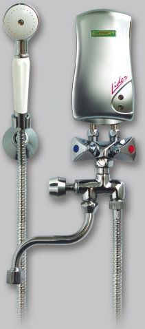 Lider jest ogrzewaczem przepływowym jednopunktowym. Charakteryzuje się : natychmiastowym załączeniem się podczas przepływu bardzo małą wrażliwością na zapowietrzenie instalacji wodnej wysokiej jakości układem grzejnym - odpornym na przepalenia wysoką sprawnością cieplną, dzięki specjalnej konstrukcji elementu grzejnego elektronicznym zabezpieczeniem systemu sterowania wysokim stopniem szczelności - IP 35 pozwalającym na montaż w kabinie prysznicowej Lider jest ogrzewaczem jednopunktowym wyposażonym w baterię bezciśnieniową z wylewką lub kompletem prysznicowym. Dostepny w wersjach: umywalkowej prysznicowej umywalkowo-prysznicowej Oferowany w kolorach : białym i szlachetnym chromie. Typ podgrzewacza Jedn. miary Lider 4,5 Moc znamionowa kW 4,5 Napięcie zasilania V 230 Nominalny pobór prądu A 19,6 Minimalny przekrój elektrycznych przewodów przyłączeniowych mm2 3 x 2,5 Ciśnienie robocze MPa 0 Ciśnienie znamionowe MPa 0,15 - 0,6 Minimalna rezyskowność wody cm 1300 Punkt włączenia grzania l/min 1,5 Wydajność (przy wzroście temp. wody) l/min 1,9 Wymiary gabarytowe bez baterii (wys. x szer. x głębokość) mm 182 x 96 x 66 Masa bez baterii kg 0,6