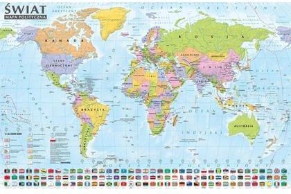 Dwustronnie laminowana podkładka na biurko będzie zarówno cenną pomocą w nauce i zabawie, jak i ozdobą biurka. Po jednej stronie znajduje się mapa polityczna, na odwrocie - mapa krajobrazowa. Trwały laminat, którym zabezpieczona jest mapa umożliwia robienie własnych notatek z wykorzystaniem suchościeralnego flamastra. Mapa polityczna Czytelna i aktualna mapa przedstawia polityczny podział świata. Zaznaczono na niej: wszystkie państwa świata oraz terytoria zależne, stolice państw, najważniejsze miasta, flagi wszystkich państw wraz z informacją o położeniu państwa na mapie, rzeźbę terenu oraz dna morskiego. Mapa krajobrazowa Krajobrazy Ziemi, od lasów tropikalnych przez stepy i pustynie po tundrę i obszary wiecznie pokryte lodem, w połączeniu z plastyczną rzeźbą terenu oraz dna morskiego tworzą niezwykle obrazową prezentację naszej planety. Na mapie znajdują się: opisy pasm górskich, nizin, wyżyn i innych regionów fizyczno-geograficznych, najważniejsze szczyty, przełęcze i przylądki, opisy oceanów, mórz, jezior, rzek i innych elementów hydrograficznych, dodatkowe mapy pokazujące obszary podbiegunowe. Wydawnictwo: ExpressMap Opakowanie: 67x47 mm