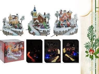 Ta świąteczna sceneria jest jedną z dwóch z zestawu świątecznych wiosek, których atrakcyjny wygląd umili świąteczny czas.. Przytulny dom Świętego Mikołaja oświetlony diodami LED na zewnątrz (ciepła biel). Światła LED oświetlają również dużą, wirującą choinkę pośrodku. Z przodu wioski płynie rzeka, …