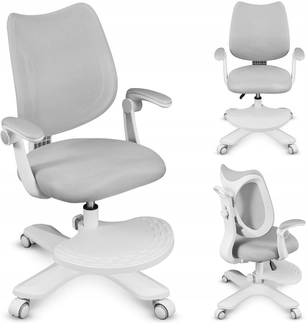 Fotel Obrotowy Krzesło DLA DZIECI MŁODZIEŻY MARK ADLER Junior 4.6 Grey Cechy szczególne Ergonomiczny fotel obrotowy dla dzieci Idealne dopasowanie do wzrostu dzięki możliwości personalizacji ustawień fotela Precyzyjne wsparcie pleców - regulowana wysokość i głębokość oparcia Funkcjonalne, odchylane podłokietniki Regulacja wysokości siedziska - 10 cm Regulowana wysokość podnóżka Profilowane oparcie Obrót 360 stopni Wygodne siedzisko z miękkiej pianki Kółka grawitacyjne z blokadą podczas siedzenia Z myślą o prawidłowej postawie dziecka Zadbaj o prawidłową postawę dziecka podczas siedzenia. Fotel Junior 4.6 oferuje szerokie możliwości regulacji, dzięki czemu łatwo dopasować go do indywidualnych potrzeb i wzrostu użytkownika: Regulowana wysokość oparcia Odchylane podłokietniki Regulowana głębokość oparcia Regulowana wysokość siedziska Regulowana wysokość podnóżka Regulowana wysokość i głębokość oparcia Oparcie regulowane w dwóch płaszczyznach pozwala idealnie dopasować fotel do zmieniających się potrzeb dziecka, zapewniając komfort mu przez wiele lat. Dzięki regulacji wysokości oparcia możesz dostosować jego pozycję do wzrostu dziecka , co wspiera prawidłową postawę i odciąża kręgosłup, szczególnie w odcinku lędźwiowym. Możliwość regulacji głębokości oparcia pozwala na idealne ustawienie odległości między oparciem a siedziskiem. Dzięki temu plecy dziecka są prawidłowo podparte, a uda wygodnie spoczywają na siedzisku bez ucisku. Profilowane oparcie Profilowane oparcie sprawia, że fotel Junior idealnie wspiera plecy dziecka. Zapewnia prawidłowe podparcie lędźwi i górnych partii pleców, zapewniając wygodę nawet podczas długiego siedzenia. Ergonomiczne podłokietniki Wyprofilowane podłokietniki fotela Junior skutecznie podpierają przedramiona, zapobiegając wiszącym łokciom i nadmiernemu napięciu mięśni barków. Dzięki możliwości ich odchylenia, krzesło bez problemu wsunie się pod blat biurka. Regulacja wysokości siedziska – 10 cm Junior „rośnie” razem z Twoim dzieckiem! Możliwość regulacji wysokości w zakresie 10 cm pozwala na idealne dopasowanie fotela do wzrostu dziecka, zapewniając ergonomiczną pozycję, która sprzyja zdrowemu rozwojowi kręgosłupa. Regulowany podnóżek Fotel Junior został wyposażony w praktyczny podnóżek z regulacją wysokości, który zapewnia optymalne podparcie nóg. To szczególnie ważne dla młodszych dzieci, które potrzebują stabilizacji i komfortu podczas siedzenia. Blokada kółek podczas siedzenia - kółka grawitacyjne Fotel Junior został wyposażony w mechanizm blokady kółek, który stabilizuje fotel podczas siedzenia. Dzięki temu dziecko może wygodnie korzystać z biurka bez niekontrolowanego przemieszczania się. To praktyczne rozwiązanie pozwala na lepsze skupienie się na nauce, malowaniu czy odrabianiu lekcji. Specyfikacja Producent: Mark Adler Model: Junior 4.6 Grey Odchylane podłokietniki: tak Regulowana wysokość: tak, 10 cm Funkcje: regulowane wysokość i głębokość oparcia, regulowana wysokość siedziska, regulowana wysokość podnóżka, kółka grawitacyjne