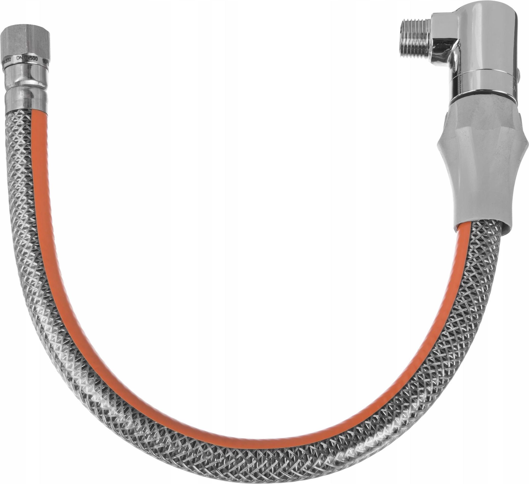 WĄŻ DO GAZU Z SZYBKOZŁĄCZEM 1/2" 125cm Przewód do gazu ziemnego (z sieci) z kolanem i szybkozłączem Długość przewodu: 125cm Zastosowanie do elastycznego podłączenia urządzeń domowych (np. kuchenki) zasilanych paliwami gazowymi. Przewód nadaje się do stosowania w pomieszczeniach objętych przepisami dotyczącymi reakcji na ogień. Obrotowe/ruchome końcówki/nakrętki podczas instalacji wąż się nie skręca. Właściwości Maksymalna temperatura robocza: 60°C Maksymalne ciśnienie robocze: 0,5 bar Odporność na ogień: 650°C/30 min Reakcja na ogień: klasa A1 Rekomendowany minimalny promień gięcia w trakcie użytkowania: 90 mm Przeznaczenie do gazów: E; Ls; Lw; P; B; B/P Zgodny z normą: DIN EN 15069:2008 ; EN 14800:2007 Dane Techniczne Producent: INVENA Kod produktu: GW-20-125 WYGODNE PODŁĄCZENIE W wężu zastosowane zostały dwa przyłącza, jedno z gwintem wewnętrznym oraz z szybkozłączem z gwintem zewnętrznym o średnicy 1/2". Połączenie obrotowe umożliwia obrót przewodu bez utraty szczelności oraz maksymalnie ułatwia montaż ponieważ nie trzeba przykręcać całego węża a jedynie końcówki przyłączeniowe. Jest ona bardzo praktyczna, gdyż zamyka się samoistnie zaraz po odłączeniu np. od kuchenki. Budowa przewodu Wysoko-plastyczna stal nierdzewna uformowana jako przewód falisty o równolegle wykonanych przetłoczeniach Precyzyjny oplot wykonany również ze stali nierdzewnej mający zdecydowany wpływ na wytrzymałość przewodu. Ognioodporna powłoka zewnętrzna. Przeźroczyste i pomarańczowe tworzywo sztuczne chroni przewód przed czynnikami zewnętrznymi w tym głównie środkami czyszczącymi i chemicznymi mogącymi spowodować powstanie ognisk korozji.