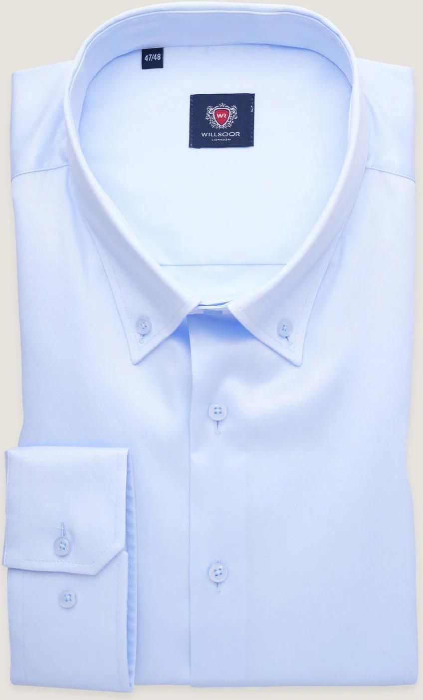 Jasnobłękitna, klasyczna koszula o gładkiej fakturze z podpinanym kołnierzykiem, 100% bawełna z formułą 2 W Plus