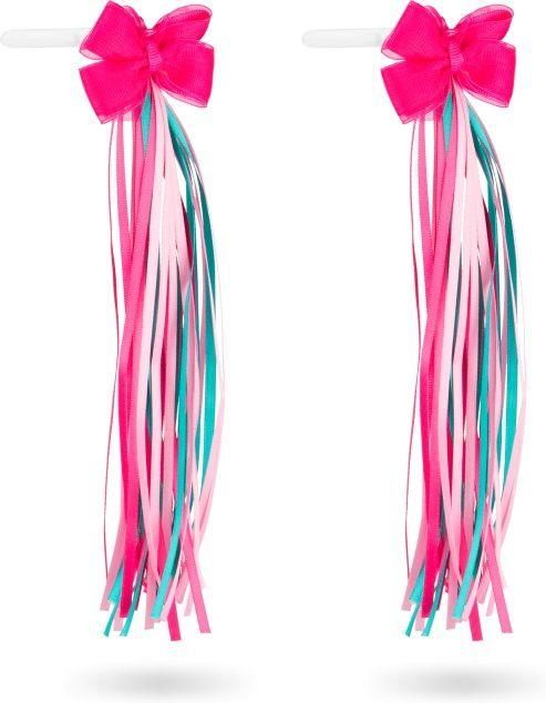Frędzle do kierownicy BOW Le Grand Każdy pokocha te kolorowe frędzle! Można nimi ozdobić dowolny rower, nowy czy taki, który używany jest od lat, aby sprawić, że będzie wyglądał wyjątkowo. Materiał: poliester Montaż: do chwytów kierownicy Kolor: mix (biały czerwony, niebieski połysk) Frędzle do kierownicy Le Grand Bow Frędzle do kierownicy Le Grand Bow to świetny wybór dla osób, które szukają kolorowych dodatków do roweru. Ich barwy oraz wykonanie pozwalają na oryginalny sposób spersonalizowania roweru dziecka. Każda pociecha będzie miała radość z takiego niezwykłego prezentu, który niewątpliwie będzie je wyróżniał na drodze. Przy okazji akcesorium sprawdzi się nie tylko w przypadku rowerków dziecięcych, ale będzie również znakomitym dodatkiem do rowerów miejskich, damskich i innych. Kolorowe frędzle dla roweru Stylowe połączenie malinowego i pudrowego różu wraz z kolorem turkusowym sprawi, iż dziecko będzie mogło się pochwalić niezwykłym dodatkiem do swojego roweru. Dzięki takiemu wzorowi akcesorium będzie pasować do różnych kolorów rowerów. Kokardka znajdująca się przy mocowaniu kolorowych frędzli Le Grand Bow stanowi estetyczne wykończenie dodatku. W czasie jazdy frędzle powiewają na wietrze, czyniąc rower bardziej widocznym oraz sprawiając, że mieni się on przyjaznymi kolorami. Łatwe do zamocowania frędzle Frędzle rowerowe Le Grand Bow mogą być łatwo przymocowane bezpośrednio do kierownicy dzięki swoim białym uchwytom. Ich wykonanie pozwala mieć pewność, że nie zsuną się z roweru w czasie jazdy. Stabilne mocowanie umożliwia wygodną jazdę bez przesłaniania widoku w trakcie korzystania z roweru. Dzięki wykonaniu z poliestru, frędzle nie będą tracić na jakości, kiedy zamokną. Wykazują one również odporność na plamy (przykładowo w związku z kontaktem z ziemią, po przewróceniu roweru) oraz nie gniotą się, dzięki czemu nawet po długim okresie użytkowania ich kształt pozostaje taki, jak w dniu zakupu.