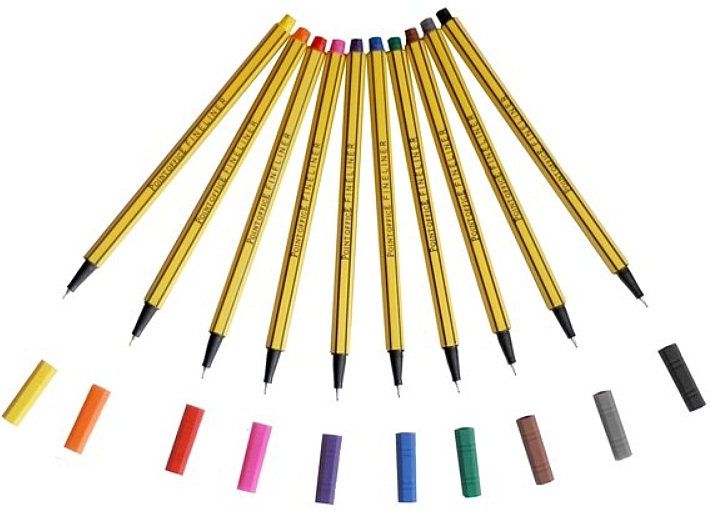 Wyróżniający się kolorystyką obudowy oraz długością linii pisania cienkopis dostępny w 4 podstawowych kolorach lub w zestawach kolorów. Wewnętrzny wkład tuszujący o długości 12,5 cm. Posiada wentylowaną skuwkę w kolorze tuszu. Kolorystyka obudowy umożliwia łatwe odnajdywanie cienkopisu wśród innych akcesoriów biurowych. - fibrowa końcówka oprawiona w metal - wentylowana skuwka - linia pisania: 0,4 mm - 10 kolorów Wymiary: 215x96 mm