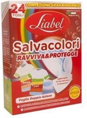 Liabel - chusteczki przeciw farbowaniu (24 szt.) Liabel chusteczki wyłapujące kolor podczas prania.Chusteczki do przechwytywania kolorów, które umożliwiają wspólne pranie rzeczy w różnych kolorach.Zostały specjalnie zaprojektowane, tak aby rozwiązać problemy związane z zanieczyszczeniem kolorów podczas prania.Dzięki specjalnej mikroperforowanej teksturze, oszczędzają kolor ubrań, arkusze wychwytują szarość i kolory rozpraszane podczas prania, zatrzymując je i zapobiegając ich przenoszeniu.