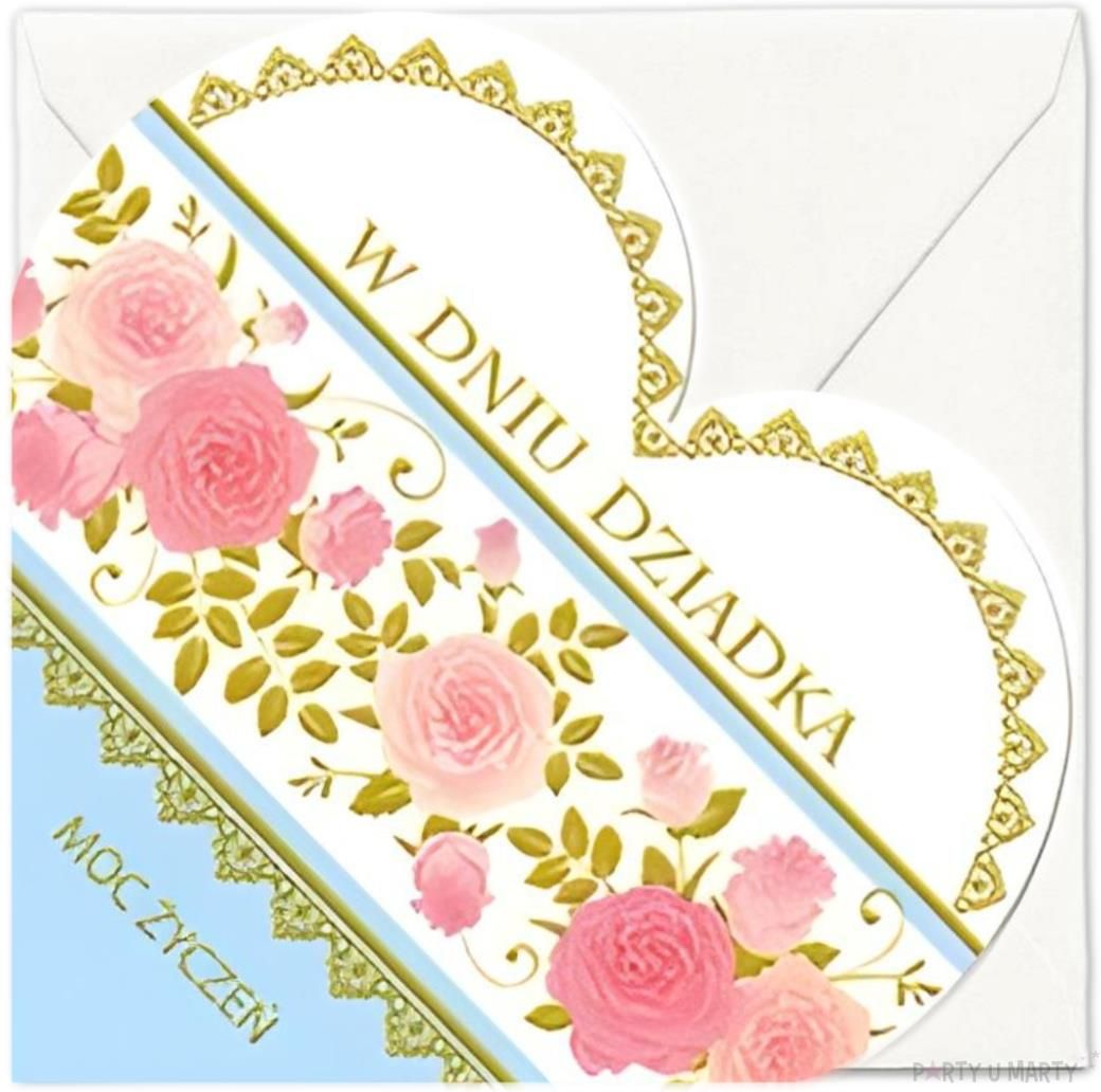 Kartka okolicznościowa w kształcie serca to idealny sposób na wyrażenie miłości i szacunku w Dniu Dziadka. Pastelowe kwiaty róże oraz złoty napis nadają jej delikatny i elegancki charakter.&#9989 Na kartce widnieje złoty napis: ";W dniu dziadka - Moc Życzeń";, który dodatkowo podkreśla wyjątkowość …