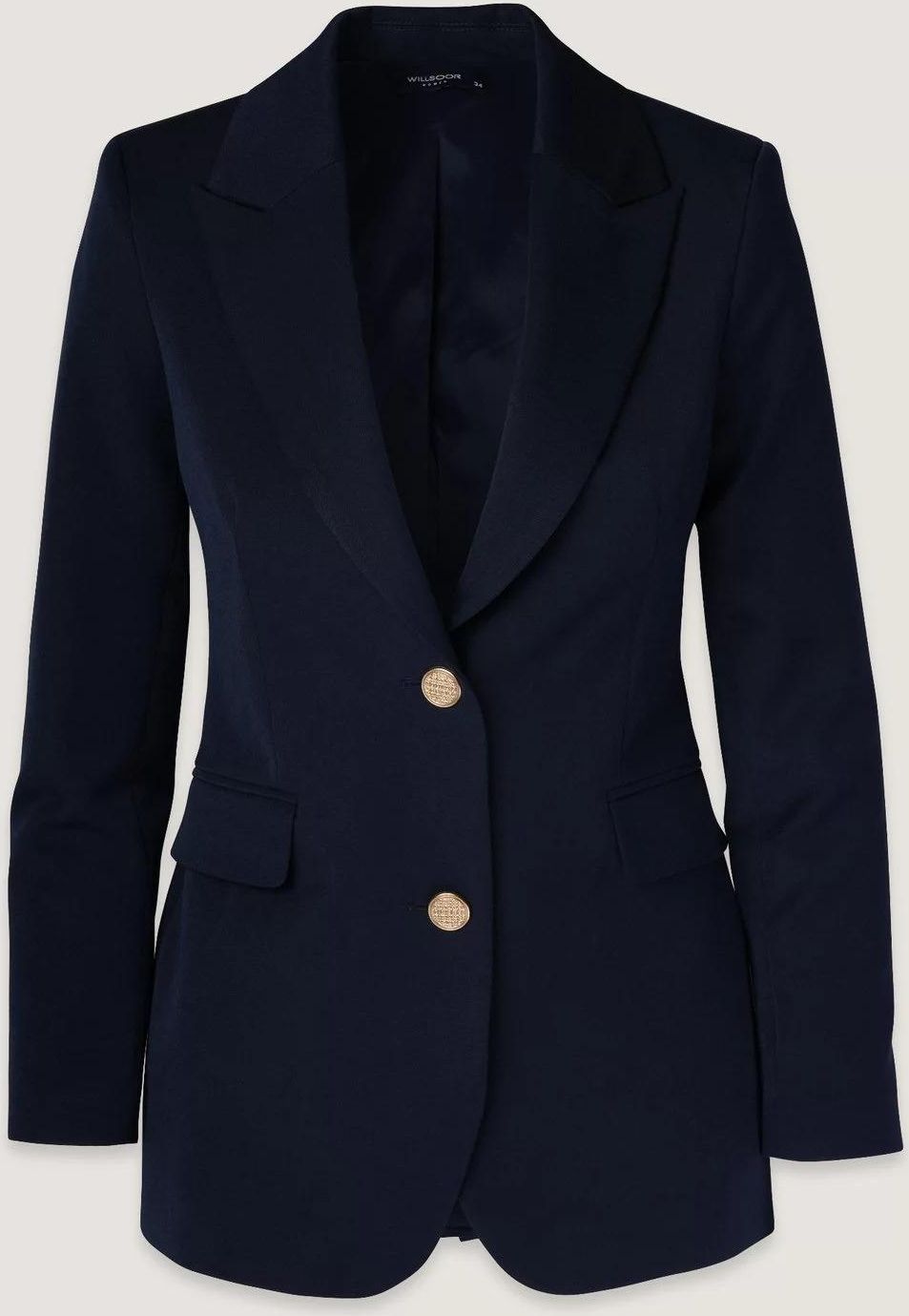 Marynarka damska Willsoor Wybierając elegancką, jednorzędową marynarkę damską marki Willsoor bez wątpienia przekonasz się do noszenia jej nie tylko od święta, ale również na co dzień! Marynarka jest lekka i wygodna, dzięki czemu nawet nie poczujesz, że masz na sobie tak niebywale elegancki strój. Została uszyta z wysokiej jakości materiału o gładkiej fakturze. Materiał jest elastyczny i delikatny w dotyku. Krój wyraźnie podkreśla linię talii. Guziki oraz kieszenie z patkami stylowo uzupełniają nowoczesny design marynarki. Tkanina: 24% wiskoza, 72% poliester, 4% elastan Skład podszewki: 98% poliester, 2% elastan Rodzaj marynarki: jednorzędowa, zapinana na dwa guziki (złote, ozdobne) Kolor główny: granatowa o gładkiej fakturze Producent: Willsoor Gwarancja: 24 m-ce Uszyta w Polsce