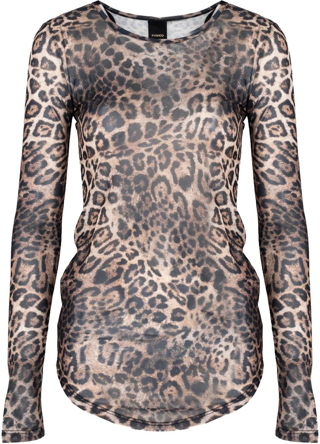 Ta cienka bluzka to idealny wybór na każdą porę roku, zapewniając nie tylko komfort noszenia, ale i stylowy wygląd, dzięki lekkości materiału, który subtelnie otula sylwetkę. Wzór w panterkę nadaje bluzce drapieżnego charakteru, który przyciąga wzrok i dodaje odrobinę zadziorności do każdej stylizacji, idealnie komponując się zarówno z eleganckimi spodniami, jak i luźnymi jeansami. Delikatny element markowy z przodu subtelnie podkreśla prestiż i jakość bluzki, dodając jej unikalności i elegancji, nie przytłaczając jednocześnie całości designu. Wyprodukowano we Włoszech, co gwarantuje najwyższą jakość wykonania oraz dbałość o każdy detal, od wyboru tkanin po precyzyjne wykończenia, dzięki czemu bluzka jest nie tylko modna, ale i trwała.