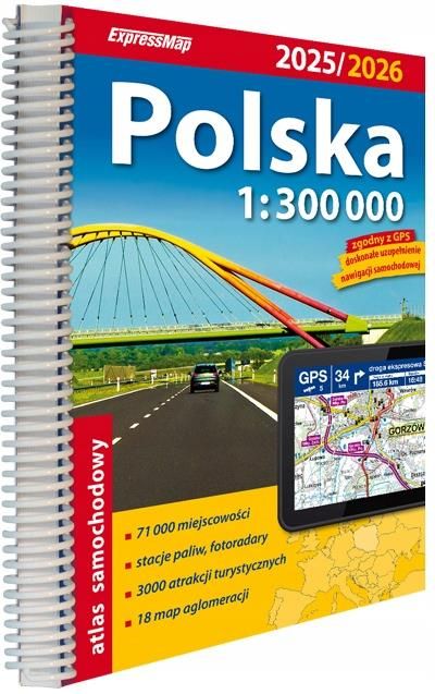 Polska atlas samochodowy 1:300 000 seria: atlasy samochodowe data wydania: 2025/2026 data aktualizacji: 2025 format: 17 x 24 cm liczba stron: 256 oprawa: miękka za skrzydełkami wersja językowa: polska ISBN: 978-83-8355-361-0 EAN: 9788383553610 Planujesz samochodową podróż po Polsce? Zabierz ze sobą atlas ExpressMap – będzie niezastąpionym towarzyszem wyprawy. Publikacja jest użyteczna zarówno dla zawodowych kierowców, jak i turystów podróżujących samochodem – zaznaczono w niej także atrakcje turystyczne. Atlas zawiera: • aktualny stan sieci drogowej, a także drogi w budowie i planowane,• 365 tys. km dróg, autostrady i drogi ekspresowe z nazwami węzłów, autostrady płatne,• krajową i międzynarodową numerację dróg,• odległości drogowe,• stacje paliw z podziałem na sieci, stacje ładowania pojazdów elektrycznych przy autostradach i drogach ekspresowych,• fotoradary stałe, odcinkowe pomiary prędkości• wybrane motele i hotele,• 3 tys. atrakcji turystycznych,• granice parków narodowych i krajobrazowych, obszarów wpisanych na listę światowego dziedzictwa UNESCO, • zabytki i inne atrakcje przyrodnicze i turystyczne,• miejscowości atrakcyjne turystycznie,• plastyczną rzeźbę terenu,• skorowidz ponad 71 tys. miejscowości z terenu Polski wraz z informacją o województwie,• 18 tranzytowych map miast w skali 1:120 000. l