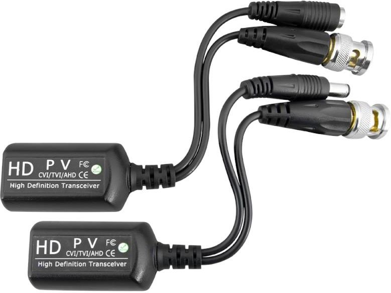 Zestaw transmiterów do 8 Mpx P-TRPV1 Pulsar P-TRPV1 zestaw pasywnych transmiterów video HD i zasilania P-TRPV1 to zestaw pasywnych urządzeń do transmisji sygnału video HD i zasilania za pomocą jednej skrętki komputerowej. Do transmisji sygnału video używana jest jedna para skrętki, natomiast zasilanie przesyłane jest z wykorzystaniem dwóch par skrętki. Zestaw w torze video posiada elementy, które zapewniają dopasowanie impedancji kabla koncentrycznego (75Ω) do impedancji przewodu symetrycznego (100Ω). W celu uzyskania najlepszej jakości transmisji i odporności na zakłócenia należy stosować kabel UTP kat. 5 (lub wyższej). Przy wykonaniu połączenia należy zwrócić uwagę na właściwe przygotowanie przewodu. Uwaga! Nieprawidłowo wykonany przewód może spowodować uszkodzenie kamery. Moduły P-TRPV1 zakończone są dwoma rodzajami złącz: wtykiem BNC (transmisja sygnału video HD-CVI / HD-TVI /AHD) gniazdem/wtykiem zasilania JACK 2,1/5,5 (zasilanie kamery) Moduł wyposażony jest w diodę LED (umieszczoną wewnątrz złącza RJ45). Dioda czerwona sygnalizuje obecność napięcia zasilania. Dane techniczne: Sygnał video: 1,0 Vp-p, 75 Ω Zasięg transmisji sygn. Video (UTP 5e lub wyższe): HDCVI 720p 450m 1080p 250m 3 / 4 / 8 Mpx 180m HD-TVI 720p 230m 1080p 230m 3 / 4 / 5 / 8 Mpx 200m AHD 720p 320m 1080p 200m 3 / 4 / 5 / 8 Mpx 200m CVBS 960H 450m Pasmo video: 0 ... 50 MHz ( -3 dB ) Impedancja złącza koncentrycznego / typ złącza: 75 Ω / wtyk BNC (na przewodzie 100mm) Impedancja złącza niesymetrycznego / typ złącza: 100 Ω / gniazdo RJ45 Tłumienie (przelotowe): -0,5dB / 5MHz CMRR: 60dB / 5MHz Dopuszczalny zakres napięcia wejściowego: 12-15 V DC Dopuszczalny maksymalny prąd: 1 A (dla 12 V) Temperatura pracy: -10 °C ÷ 55 °C Temperatura przechowywania: -40 °C ÷ 60 °C Dopuszczalna względna wilgotność otoczenia: <95% Wymiary: 22 × 10 × 40mm (z przewodem - długość 180mm) Waga netto/brutto: 0,075kg Deklaracje: CE