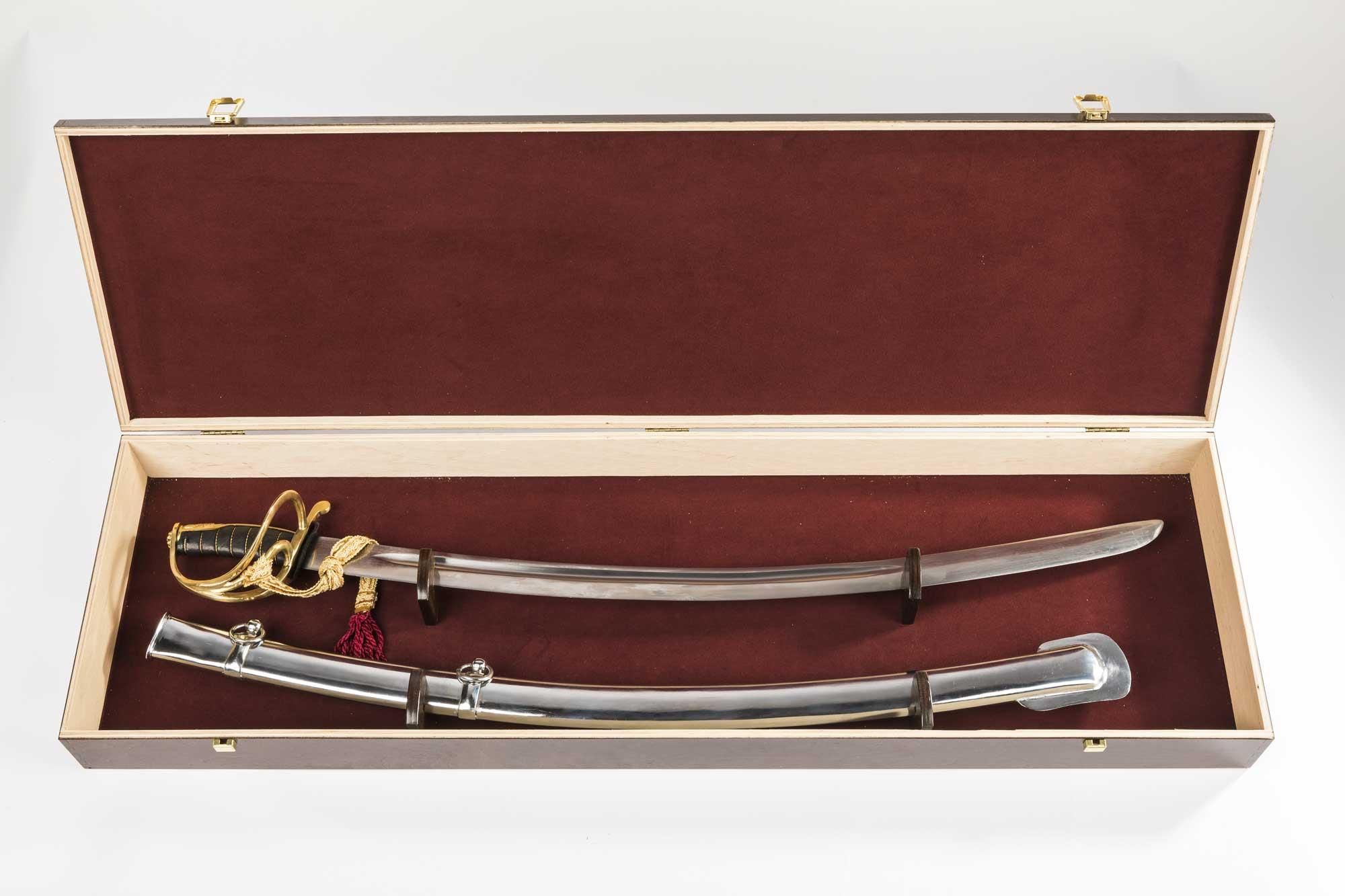 Replika szabli w pudełku, którą w 1917 roku Księżna Izabella Radziwiłł podarowała XII- emu Pułkowi Ułanów Podlaskich