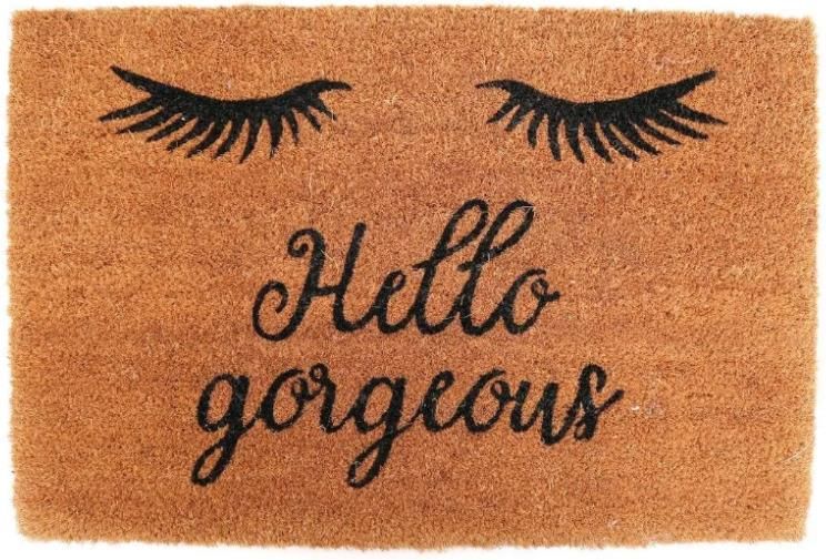 Wycieraczka "Hello Gorgeous" wykonana z wysokiej jakości włókna kokosowego to nie tylko praktyczny, ale i stylowy dodatek do Twojego domu. Dzięki swoim wymiarom 60 x 40 cm idealnie sprawdzi się przed drzwiami wejściowymi, skutecznie usuwając brud i wilgoć z obuwia. Naturalne włókno kokosowe charakteryzuje się dużą wytrzymałością i odpornością na zużycie, co zapewnia długotrwałe użytkowanie. Zabawny napis "Hello Gorgeous" doda uroku każdemu wejściu, witając Twoich gości z uśmiechem. Ta wycieraczka to idealne połączenie funkcjonalności i dekoracyjności, nadając przestrzeni przytulny i przyjazny charakter.