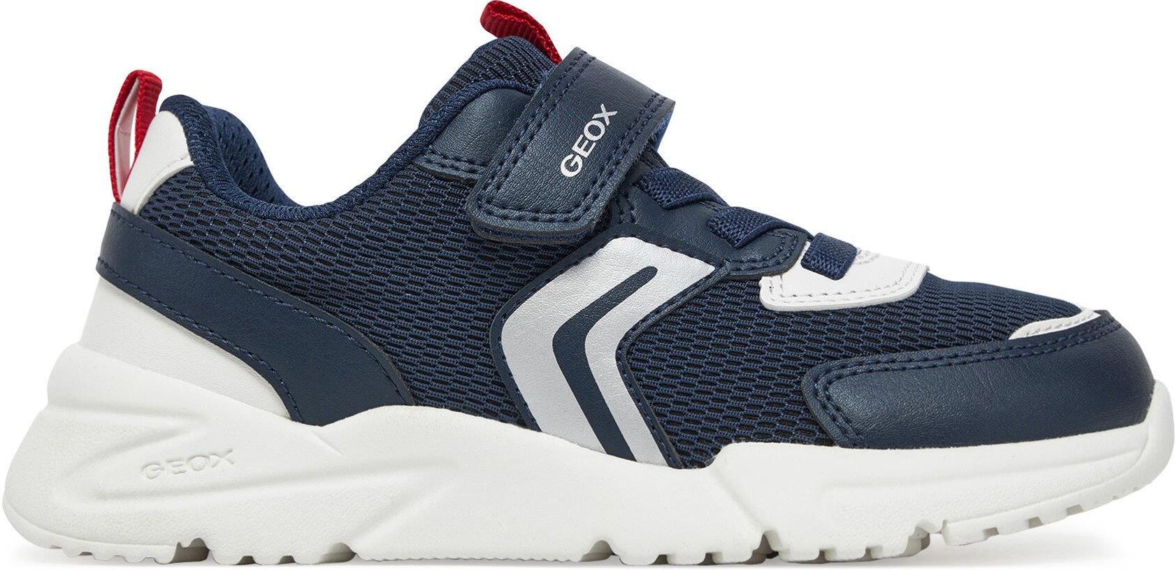 Geox J Loftus Boy B sneakersy chłopięce, granatowy czerwony, 30 EU Producent: Geox Model J Loftus Boy B to doskonałe połączenie funkcjonalności i stylu. Odpowiednie dla chłopców, dostępne są w syntetycznej skórze z wygodnym ankle strapem. Dzięki swojemu designowi, będą pasować zarówno do codziennych, jak i bardziej formalnych stylizacji. Oddychający materiał