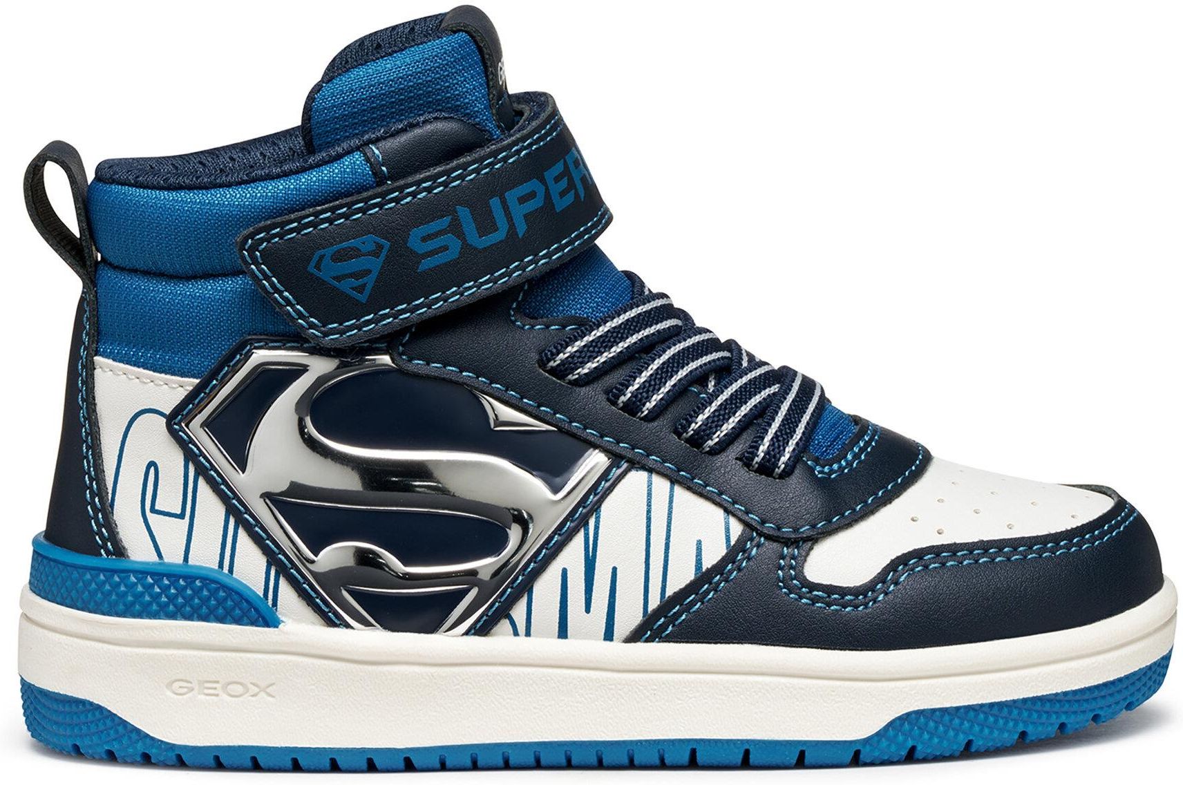 Sneakersy chłopięce wysokie Geox J Washiba Boy J56LQH-05411-C4211 Sneakersy chłopięce Geox J Washiba Boy to stylowe i wygodne obuwie, które łączy nowoczesny design z funkcjonalnością dla aktywnych dzieci. Cholewka wykonana jest z poliuretanu, co zapewnia łatwą pielęgnację, trwałość i odporność na wilgoć, a także utrzymuje komfort przez cały dzień. Model zdobią detale inspirowane postaciami Supermana, dodające indywidualności i wyrazistego stylu. Idealnie nadaje się do codziennego użytkowania, spacerów i aktywnych zabaw, łącząc praktyczność z oryginalnym wyglądem. Szczegóły Szybkie i łatwe zakładanie dzięki zapięciu na rzep i elastycznym sznurowadłom. Wzmocniony nosek zapewnia dodatkową ochronę podczas aktywnych zabaw. Wyjmowana wkładka zapewnia higienę i komfort stopy. Technologia Respira łączy perforowaną podeszwę z wodoodporną membraną, utrzymując optymalny mikroklimat i suchość stóp. Zalecenia dotyczące pielęgnacji Regularnie usuwać brud i kurz z powierzchni butów za pomocą miękkiej szczotki lub gąbki. Po każdym noszeniu suszyć obuwie, unikając nadmiernego nagrzewania. Należy unikać silnego przemoczenia obuwia. Zaleca się używanie specjalnych wkładek lub papieru, aby zachować kształt obuwia.