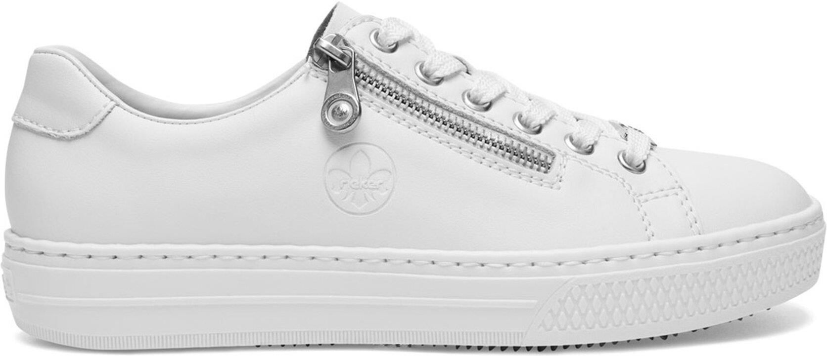 Białe sneakersy Rieker to idealne obuwie dla kobiet, ceniących sobie elegancję i wygodę na co dzień. Wykonane z wysokiej jakości skóry, zapewniają trwałość oraz wyjątkowy komfort noszenia. Dzięki suwakowi, zakładanie i zdejmowanie butów jest szybkie i bezproblemowe, co sprawia, że są one niezwykle praktyczne. Te sneakersy doskonale uzupełnią każdą stylizację, nadając jej nowoczesnego i świeżego wyglądu. Idealne zarówno na spacer po mieście, jak i na spotkania z przyjaciółmi. Postaw na styl i komfort z marką Rieker!