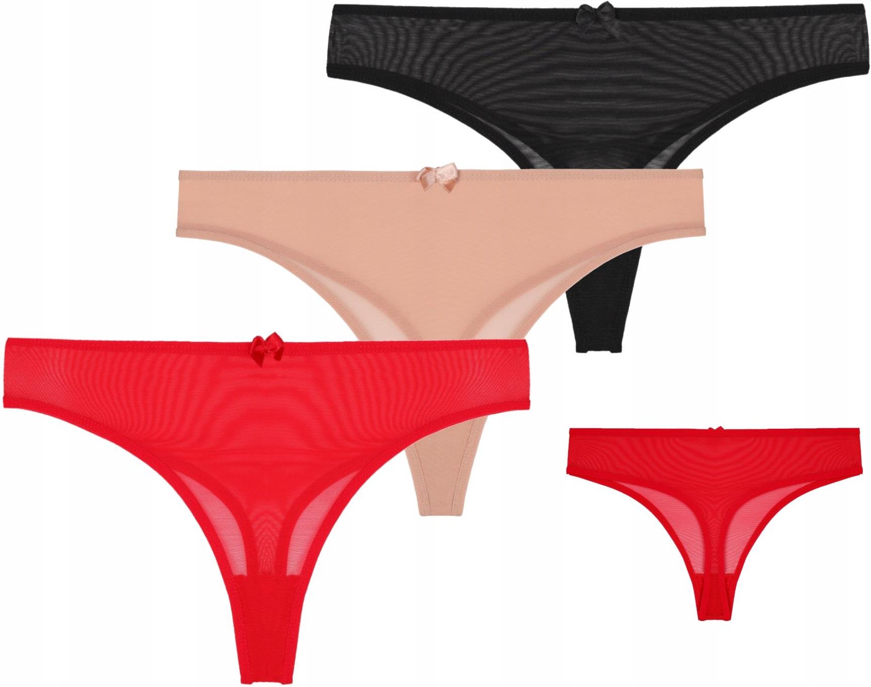 Stringi Majtki Damskie z Delikatnej Siateczki Moraj 3 szt. XL Śrem