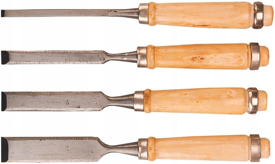 Dłuta 6-24 mm, zestaw 4 szt. Dłuta 6-24 mm, zestaw 4 szt. Waga netto: 312 g Długość całkowita produktu: 230 mm Ilość elementów w zestawie: 4 szt Materiał wykonania produktu: stal narzędziowa Uchwyt: drewniany Komplet: Tak Wzmocnienie do pobijania: Nie Waga opakowania: 0.33 kg Szerokość opakowania: 14.00 cm Wysokość opakowania: 3.00 cm Długość opakowania: 33.00 cm Dłuta 6-24 mm, zestaw 4 szt.