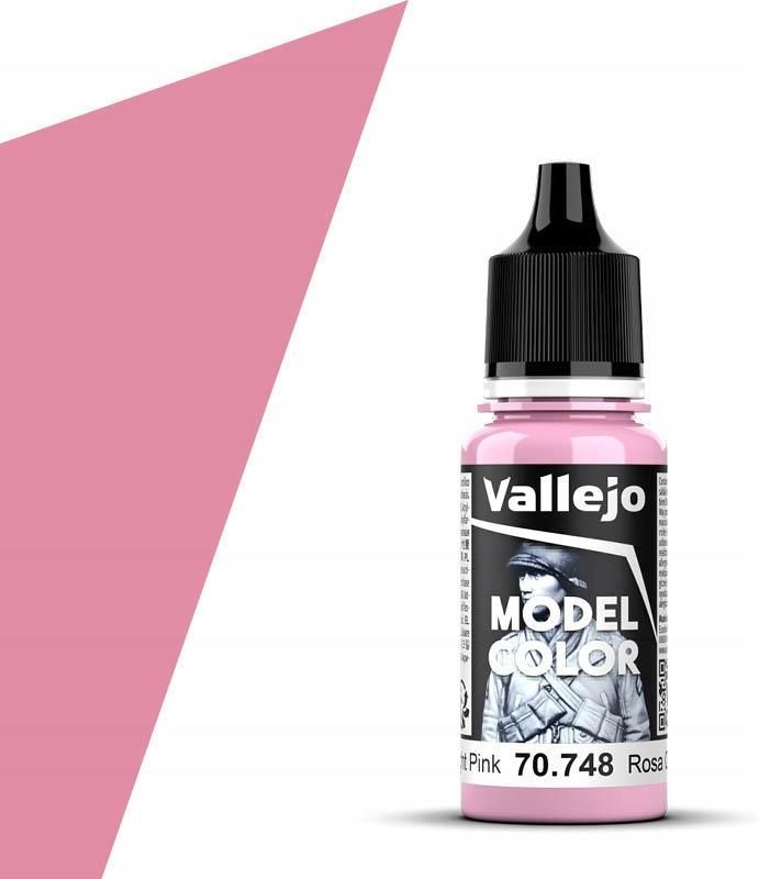 Vallejo 70748 - Farba akrylowa Model Color 042. Light Pink Buteleczka o pojemności 18 ml, zawiera farbę akrylową z serii Model Color do malowania modeli plastikowych. Farby Vallejo z serii MODEL COLOR Seria farb akrylowych na bazie wody stworzona z myślą o malowaniu modeli plastikowych oraz metalowych przy użyciu pędzelka. Farby sprzedawane są w buteleczkach o pojemności 17 ml z zakraplaczem. Tego typu opakowanie zapobiega parowaniu farby i wysychaniu wewnątrz butelki. Farba nie jest łatwopalna i nie zawiera rozpuszczalników.