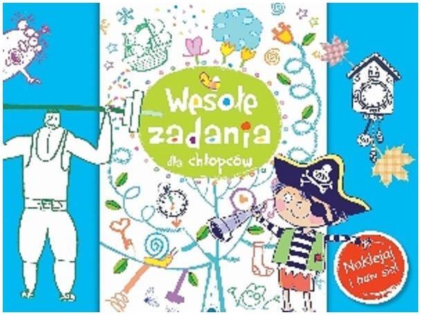 Wesołe zadania dla chłopców, to nie tylko kolorowanki. Znajdziesz tu mnóstwo fantastycznych i zabawnych rysunków do uzupełnienia, historyjek do wymyślenia i bohaterów do stworzenia. Obrazki możesz też ozdobić naklejkami!