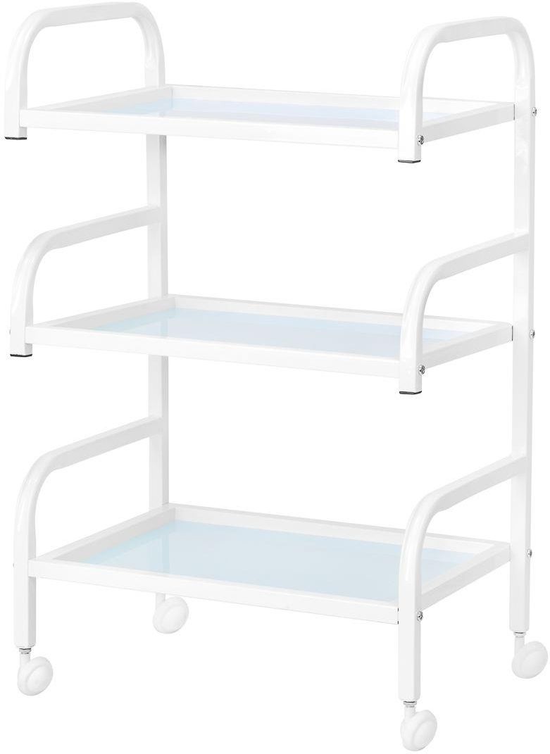 Marka ACTIVESHOP od wielu lat oferuje szeroką gamę produktów, które sprawdzają się w profesjonalnym użytku w wielu branżach. W dostępnym asortymencie można znaleźć artykuły z różnych kategorii, od drobnych, niezbędnych akcesoriów, po specjalistyczne wyposażenie. Praktyczny pomocnik kosmetyczny Pomocnik kosmetyczny Basic 122 to funkcjonalny mebel, który doskonale sprawdzi się w każdym salonie kosmetycznym czy gabinecie SPA. Lekka konstrukcja ułatwia codzienną pracę, a trzy szklane półki zapewniają wygodne przechowywanie kosmetyków, akcesoriów i sprzętu. Minimalistyczny design dodaje wnętrzom profesjonalnego charakteru. Design dla wygody użytkowania Stelaż z trwałego aluminium w odcieniach bieli oraz szklane półki tworzą nowoczesną i estetyczną całość, którą łatwo utrzymać w czystości. Cztery kółka zapewniają mobilność, co ułatwia organizację przestrzeni roboczej, a solidne materiały gwarantują stabilność i trwałość użytkowania. Wymiary zostały podane na zdjęciu. Kolor: odcienie bieli