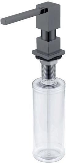 Wbudowany dozownik detergentu Kork pojemność 500 ml Kolor antracytowy (Anthracite Monarch) średnica pojemnika 64 mm górne wypełnienie do montażu w otworze 35 mm pasuje do wybranych zlewozmywaków i baterii kuchennych w wykończeniu Monarch