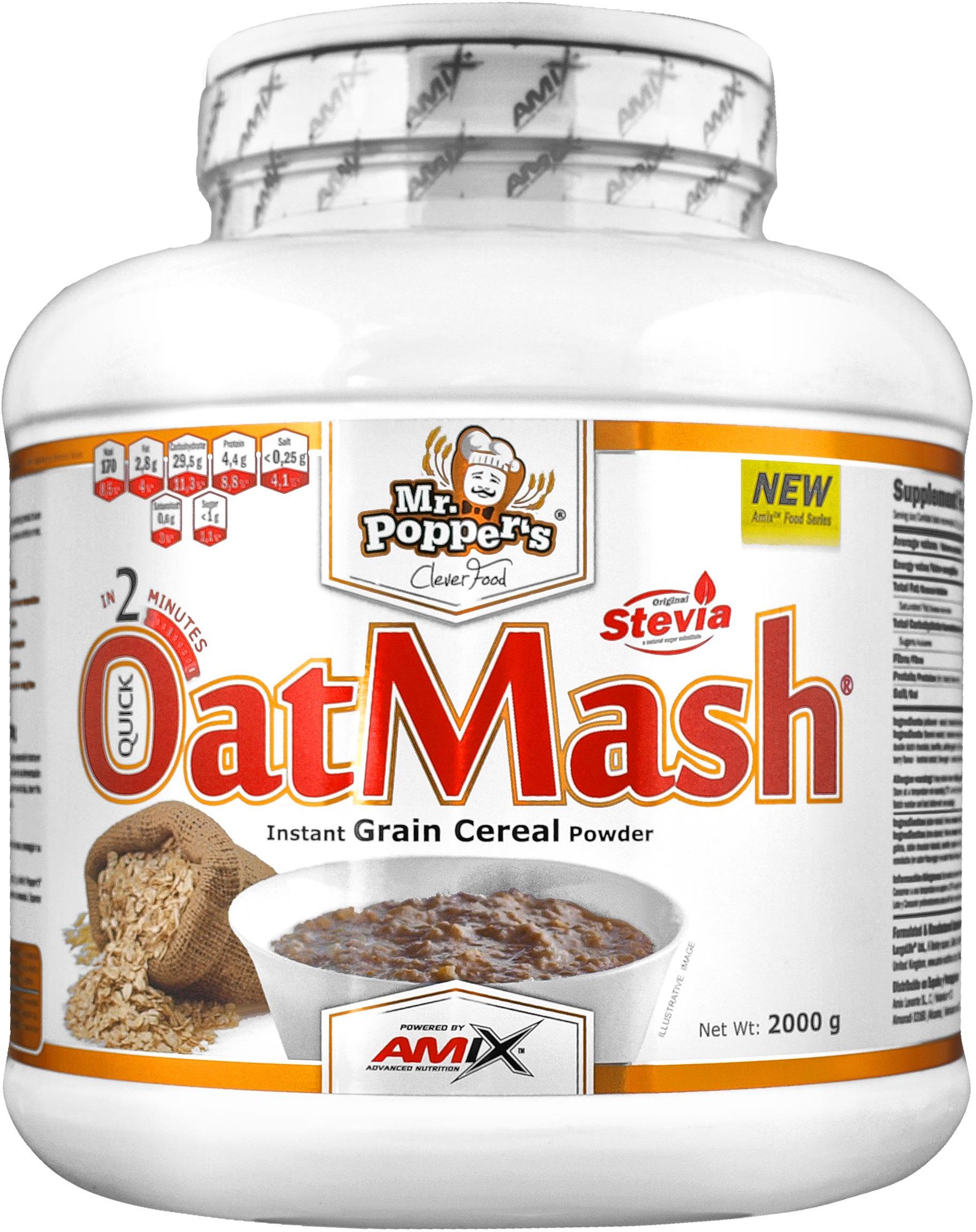 Amix Mr. Popper's OatMash to produkt oparty na ziarnach owsa, który zapewnia wysoką wartość odżywczą związaną przede wszystkim z wysoką zawartością węglowodanów złożonych. Świetnie się sprawdza jako owsianka, koktajle lub urozmaicenie klasycznych przepisów kulinarnych.