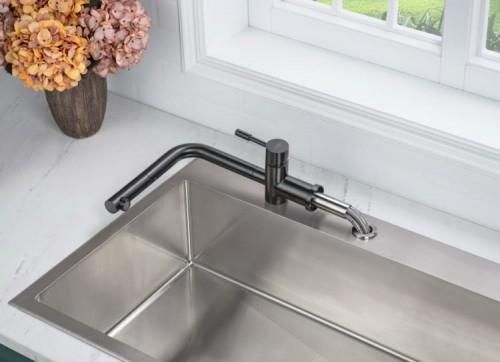Blue Water Corsa Inox Czarna Stal Bateria kuchenne to nieodłączny element wyposażenia każdej kuchni, który ma kluczowe znaczenie w codziennych czynnościach. Właściwy wybór baterii wpływa nie tylko na komfort użytkowania, ale także na estetykę wnętrza. Wśród dostępnych modeli, bateria Blue Water Corsa Inox Czarna Stal łączy nowoczesny design z praktycznymi funkcjami, które ułatwiają codzienne obowiązki w kuchni. Materiał i design Bateria wykonana jest z wysokiej jakości stali nierdzewnej, co zapewnia nie tylko trwałość, ale również odporność na uszkodzenia. Czarny kolor wykończenia sprawia, że model ten doskonale wpisuje się w aktualne trendy aranżacji wnętrz, oferując elegancki wygląd, który harmonizuje z różnymi stylami kuchennymi. To bateria stojąca, co ułatwia montaż i dostosowanie do różnorodnych układów kuchennych. Funkcjonalność Model Corsa Inox jest bogaty w funkcje dodatkowe, które wpływają na komfort użytkowania. Posiada wyciąganą wylewkę, co umożliwia łatwe mycie dużych garnków oraz dotarcie do trudno dostępnych miejsc. Dzięki obrotowej wylewce o zakresie 360°, korzystanie z baterii staje się bardziej wygodne. Dodatkowo, urządzenie charakteryzuje się systemem oszczędzania wody, co jest korzystne zarówno dla środowiska, jak i dla domowego budżetu. Kluczowe funkcje i zalety Model Blue Water Corsa Inox oferuje szereg istotnych funkcji, które zwiększają komfort użytkowania: wyciągana wylewka zwiększająca funkcjonalność, obrotowa wylewka o zakresie 360°, wysokiej jakości głowica ceramiczna dla długotrwałej niezawodności, uchwyt jednouchwytowy umożliwiający łatwą regulację temperatury i przepływu wody, elastyczne wężyki podłączeniowe o długości 450 mm, możliwość otwierania okna 55 mm nad poziomem blatu. Typ głowicy i uchwyt Model wyposażony jest w głowicę ceramiczną, co zapewnia płynne działanie oraz długotrwałą niezawodność. Uchwyt jednouchwytowy umożliwia szybką i wygodną regulację temperatury oraz intensywności strumienia wody, co sprawia, że korzystanie z niego jest intuicyjne i komfortowe w codziennym użytkowaniu. Wylewka Wylewka w tej baterii to element, który znacząco wpływa na funkcjonalność. Dzięki elastyczności oraz obrotowemu mechanizmowi, użytkownik ma pełną swobodę ruchu. Wylewka może być wyciągana, co sprawia, że mycie większych naczyń staje się prostsze i bardziej efektywne. Kompatybilność i montaż W kwestii montażu, model Corsa Inox jest łatwy w instalacji dzięki elastycznym wężom podłączeniowym o średnicy 3/8”. Umożliwia to szybkie i bezproblemowe podłączenie do standardowych systemów. Dodatkowo, konstrukcja urządzenia pozwala na otwieranie okna nawet 55 mm nad poziomem blatu, co stanowi praktyczne rozwiązanie w kuchniach z dużymi oknami. Estetyka Wykończenie w czarnej stali nie tylko nadaje baterii nowoczesny wygląd, ale również sprawia, że jest ona odporna na zarysowania. Wysokość wynosząca 29 cm sprawia, że model idealnie wpisuje się w współczesne aranżacje kuchenne, łącząc estetykę z funkcjonalnością. Dzięki zastosowanym materiałom, bateria charakteryzuje się długowiecznością oraz łatwością w utrzymaniu czystości.