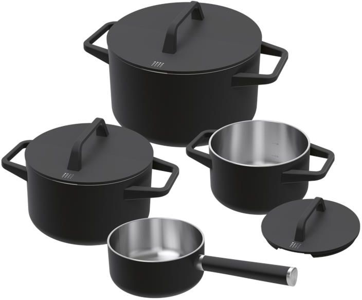 Zestaw Garnków czarnych matowych BORA KWPAP1 7 sztuk Cechy: • Odchylana pokrywa BORA • Technicznie dostosowana do systemów wyciągów kuchennych BORA • Minimalistyczny design • Można myć w zmywarce • Skala pomiarowa • 3 lata gwarancji Zakres dostawy: Garnek Ø 160 mm z odchylaną pokrywką BORA Garnek Ø 200 mm z odchylaną pokrywką BORA Garnek Ø 240 mm z odchylaną pokrywką BORA Rondel Ø 160 mm Instrukcja obsługi i montażu Informacje o produkcie i planowaniu: • Aby przedłużyć żywotność produktu, zalecamy czyszczenie go ręcznie. • Naczynia z jednym uchwytem mogą być używane w piekarniku pod pewnymi warunkami (maks. 5 minut w temperaturze maks. 150 °C). • Nie można używać funkcji grilla w piekarniku. • Pokrywki uchylne BORA nie nadają się do używania w piekarniku. Specyfikacja: (średnica × wysokość) Garnek Ø 160 × 95 mm Garnek Ø 200 × 115 mm Garnek Ø 240 × 135 mm Rondel Ø 160 × 75 mm Pojemność: Garnek Ø 160 mm: 1,8 l Garnek Ø 200 mm: 3,5 l Garnek Ø 240 mm: 6 l Rondel Ø 160 mm: 1,4 l Materiał 5-warstwowy (stal nierdzewna 18/8 + 3 warstwy aluminium + stal nierdzewna 18/0); odchylana pokrywka: stal nierdzewna, silikon; uchwyty garnka: stal nierdzewna; uchwyt rondla: tworzywo sztuczne/ nylon Powłoka zewnętrzna poliester pokryty silikonem Powierzchnia wewnętrzna stal nierdzewna Kolor czarny Kompatybilne źródła ciepła indukcja, ceramika szklana, płyta grzejna, gaz, można używać w piekarniku pod pewnymi warunkami Waga (netto) Garnek Ø 160 mm: 1600 g Garnek Ø 200 mm: 2400 g Garnek Ø 240 mm: 3380 g Rondel Ø 160 mm: 1400 g