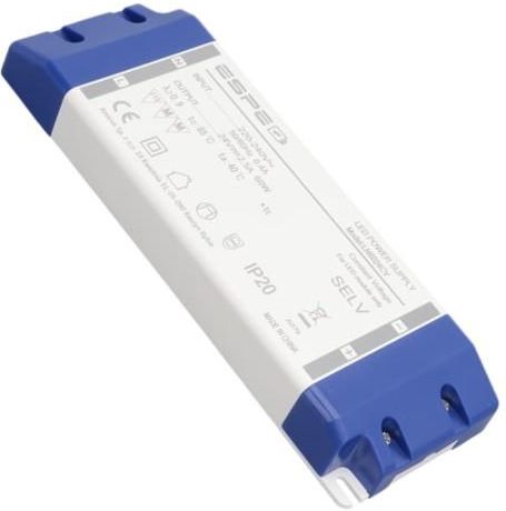Płaski zasilacz LED 24V 60 Watt profesjonalny serii LN Wysokiej jakości profesjonalny zasilacz Led ESPE serii LN stałonapięciowy 24V o mocy 60 Watt. Transformator Led do taśm 24V, do żarówek i modułów ledowych 24V. Zasilacz ledowy w zamkniętej obudowie. Płaskie zasilacze Led z serii LN PRO to wysokiej jakości zasilacze do montażu w zabudowie meblowej, do montażu w zabudowie sufitowej lub w listwie zabudowy karnisza. Zasilacze serii LN PRO posiadają zamkniętą wytrzymałą obudowę plastikową, a jego przyłącza zasilające na 230V i na 24V są schowane pod specjalnymi przysłonami, co zapewnia bezpieczeństwo użytkowania zasilacza, oraz zapobiega przed przypadkowym porażeniem prądem i napięciem. Zasilacz w płaskiej obudowie plastikowej meblowej zamkniętej, jest to zasilacz z serii Premium, który znajdzie swoje zastosowanie w bardziej wymagających instalacjach oświetleniowych. Podstawowe zastosowanie zasilacza LED: zasilanie taśm ledowych napięciem 24V, zasilanie dla listwy ledowej 24V, zasilanie modułów ledowych 24V, zasilanie dla żarówek ledowych MR16 i G4 na 24V. Podstawowe parametry zasilacza Led: napięcie znamionowe na wyjściu: DC24V, moc znamionowa: 60 Watt, znamionowe obciążenie prądowe: 2.5A, sprawność zasilacza: ⩾86%, maksymalne bezpieczne obciążenie dla zasilacza: 50 Watt, napięcie zasilania na wejściu: AC 220V-240V, częstotliwość napięcia zasilania: 50Hz-60Hz, zabezpieczenie przeciążeniowe: tak, zabezpieczenie zwarciowe: tak, zabezpieczenie przepięciowe: tak, klasa ochronności: II, klasa szczelności: IP30, chłodzenie zasilacza: pasywne, obudowa zasilacza: plastikowa ABS, gniazda przyłączeniowe: zaciskowe-śrubowe ukryte, wymiary zewnętrzne zasilacza (dł. x szer. x wys.): 146mm x 49mm x 24mm.