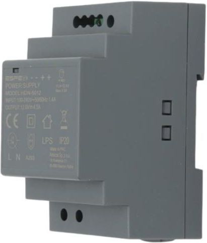 Zasilacz LED na szynę DIN DC12V 54W profesjonalny HDN Pro Wysokiej jakości zasilacz HDN marki ESPE do montażu na szynę w rozdzielni. Zasilacz impulsowy do Led na napięcie DC12V o mocy 54 Watt. Zasilacz stało-napięciowy Led z serii HDN jest profesjonalnym zasilaczem DIN, do montażu w rozdzielni elektryczne z możliwością korekty napięcia wyjściowego DC12V. Zasilacz posiada złącze zatrzask na szynę DIN który umożliwia szyki i łatwy montaż w szynie DIN. Dodatkowo zasilacz posiada zabudowane złącza śrubowe śrubowe które w bezpieczny i łatwy sposób pozwala na podpięcie zasilacza do instalacji elektrycznej i oświetleniowej. Dodatkowo zasilacz posiada wbudowane pokrętło do korekty napięcia wyjściowego DC, co pozwala na uniknięcie spadku napięcia DC pomiędzy Led a zasilaczem. Podstawowe zalety zasilacza LED Din ESPE HDN: łatwy i szybki montaż zasilacza na szynie DIN, możliwość korekty napięcia na zmniejszenie spadku napięcia DC, wysokiej jakości komponenty elektroniczne zasilacza, wysoka stabilizacja napięcia DC, sprawdzona jakość i wysoka niezawodność, dłuższa gwarancja. Podstawowe zastosowanie zasilacza LED ESPE HDN: do zasilania żarówek Led, zasilanie sterowników Led z rozdzielni, zasilanie urządzeń sterujących automatyką z rozdzielni, do zasilania elektro-zamka z rozdzielni, zasilanie instalacji oświetleniowej z rozdzielni, Podstawowe parametry zasilacza Led ESPE HDN: napięcie znamionowe na wyjściu: DC 12V, moc znamionowa: 54 Watt, znamionowe obciążenie prądowe: 4.5A, sprawność zasilacza: ⩾86%, maksymalne bezpieczne obciążenie dla zasilacza: 45 Watt, napięcie zasilania na wejściu: AC 100V-240V, częstotliwość napięcia zasilania: 50Hz-60Hz, możliwość korekty napięcia DC na wyjściu: tak, zakres korekty napięcia DC na wyjściu: 11V-13V zabezpieczenie przeciążeniowe: tak, zabezpieczenie zwarciowe: tak, zabezpieczenie przepięciowe: tak, klasa ochronności: III, klasa szczelności: IP20, chłodzenie zasilacza: pasywne, obudowa zasilacza: plastikowa ABS, gniazda przyłączeniowe: zaciski śrubowe ukryte, wymiary zewnętrzne zasilacza (dł. x szer. x wys.): 58mm x 52mm x 90mm.