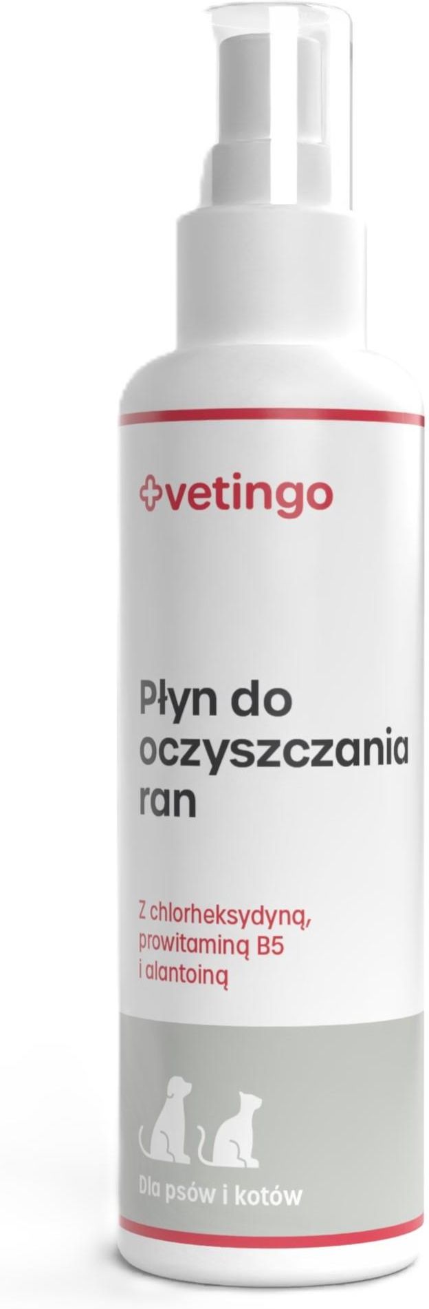 Vetingo Płyn do oczyszczania ran dla psa i kota 100ml Płyn do oczyszczania ran dla psów i kotów Produkt pielęgnacyjny Nawilża i regeneruje ⭐️ Zapewnia kompleksową ochronę skóry w codziennej pielęgnacji Idealne rozwiązanie w codziennej higienie skóry, szczególnie w miejscach narażonych na kontakt z drobnoustrojami, jak drobne rany, otarcia czy skaleczenia Preparat zawiera prowitaminę B5 allantoinę odpowiadające za zmniejszenie podrażnień, regenerują skórę i wspomagają jej gojenie diglukonian chlorheksydyny ograniczacy rozwój drobnoustrojów Produkt wyprodukowany w Polsce, przez polską firmę Polwet Sposób użycia: Zdejmij nasadkę zabezpieczającą aplikator. Nanieś preparat na ranęlub skaleczenie z odległości około 15cm. Pozostaw na skórze. Ostrzeżenia: Tylko do użytku zewnętrznego. Produkt przeznaczony wyłącznie dla zwierząt. Nie stosować w przypadku alergii zwierzęcia na którykolwiek ze składników produktu. Warunki przechowywania: Przechowywać w szczelnie zamkniętym opakowaniu, w temperaturze pokojowej 15-25°C. Przechowywać w sposób niedostępny dla dzieci i zwierząt. Składniki: AQUA, CHLORHEXIDINE DIGLUCONATE, PANTHENOL, ALLANTOIN,TRIETHANOLAMIN