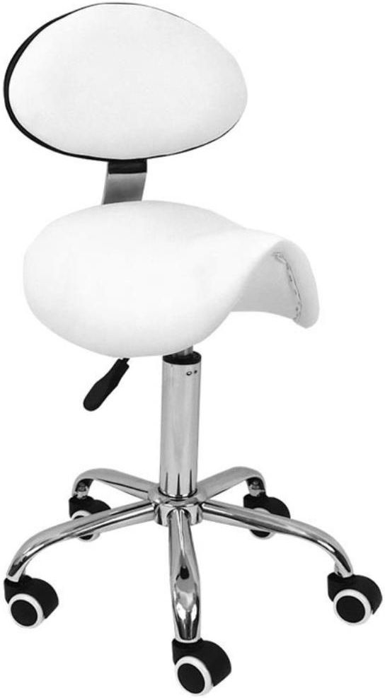 Taboret kosmetyczny OPTIMA z oparciem Taboret kosmetyczny OPTIMA z oparciem biały Wygodny i elegancki, dobrze wyprofilowany taboret z oparciem oraz hydrauliczną regulacją wysokości. Dostępny w białym kolorze, wykonany z ekologicznej skóry, którą można czyścić wybranymi preparatami do dezynfekcji (niezawierającymi nafty, alkoholu, amoniaku, stosowanie środków żrących może spowodować przebarwienia i przetarcia). Usytuowany na metalowej pięcioramiennej podstawie na kółkach. Stabilny, masywny z dużym siodłem i szerokim oparciem.Zastosowanie:Pomocny w zabiegach pedicure, manicure, zabiegach na twarz.Elementy składowe:W skład urządzenia wchodzi:pięcioramienna podstawa, siodło, instrukcjaParametry techniczne: waga: 6kg średnica siedziska: 34/36 cm wysokość min: 49cm wysokość max: 62 cm rozstaw kółek: 52cm max. udźwig: 150kg wysokość oparcia od siedziska: 26,5cm oparcie: 34,5cm/21 cm regulacja wysokości: góra / dół