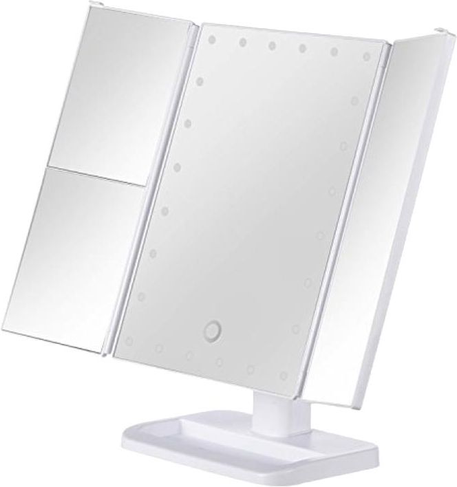 LUSTERKO PODŚWIETLANE Z POWIĘKSZENIEM 2x i 3x 22 DIOD LED KOLOR BIAŁY Lusterko podświetlane to bardzo praktyczne i niezwykle przydatne urządzenie do zabiegów pielęgnacyjnych, makijażu czy założenia szkieł kontaktowych. Posiada wbudowane podświetlenie LED, sterowane dotykowym włącznikiem wbudowanym w korpus lusterka. Zasilane poprzez kabel USB, który jest dołączony do zestawu. Dodatkowo lusterko posiada po bokach dodatkowe duże lusterko oraz lusterka z powiększeniem 2x i 3x. Specyfikacja techniczna: Wysoka jakość wykonania Posiada wbudowane podświetlenie 22 LED Dotykowy włącznik podświetlenia na lusterku Zasilanie: przez kabel USB (w zestawie) Długość kabla USB: 120cm Posiada z tyłu dodatkowy włącznik On/Off Posiada dodatkowe lusterka po bokach Kolor: biały Wymiary: Lusterko złożone: 24cm x 18cm x 2,5cm Lusterko rozłożone: 35cm x 18cm x 2cm Duże lusterko: 24 x 16,5cm Dodatkowe lusterko boczne: 24cm x 8cm Dodatkowe lusterka boczne z powiększeniem 2x i 3x: 11,5cm x 8cm Podstawa: 16cm x 12cm Wysokość całkowita: 28,5cm Zestaw zawiera: Fabrycznie nowe lusterko LED Kabel USB Oryginalne opakowanie TOWAR JEST NOWY, NIEUŻYWANY ORAZ BEZPIECZNIE ZAPAKOWANY.
