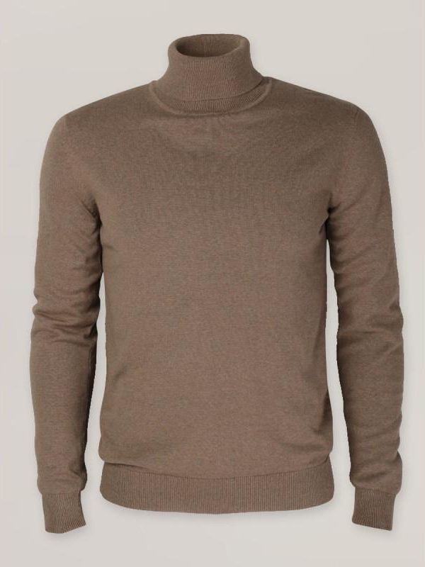 Klasyczny golf dzianinowy męski Kolor: ziemisty (szaro-brązowy) o gładkiej fakturze Skład: 100% bawełna Jakość: pierwsza Gwarancja: 24 m-ce