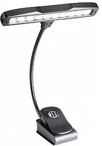 Adam Hall SLED 10 Lampka LED do pulpitu na nuty SLED10 to bardzo kompaktowa i poręczna lampka do pulpitu na nuty o zastrzeżonym wzorze. 10 wydajnych diod LED o dużym natężeniu światła można włączać oddzielnie, przy czym każda z nich posiada 2 stopnie jasności. Stożek światła można regulować dzięki elastycznemu wysięgnikowi typu „gęsia szyja” o długości 220 mm. Długi czas działania umożliwia także zastosowanie w charakterze przenośnej lampki do czytania i wielofunkcyjnej lampki z klipsem do wszelkich zastosowań w domu i w podróży. 10 białych diod LED Giętki wysięgnik typu „gęsia szyja” 2-stopniowa regulacja jasności Znacznie mniejsze zużycie prądu/baterii niż w przypadku innych lampek do pulpitu na nuty Klamra do mocowania W zestawie zasilacz sieciowy, pokrowiec i baterie (3 x 1,5 V AA) Wymiary (po złożeniu): 215 x 165 x 125 mm Dane techniczne: Liczba diod LED: 10 Kolor diod LED: Biały Długość długiego wysięgnika: 240 mm Długość Klosz lampy: 210 mm Przełącznik: tak Stopnie włącznika: Off, Low, High Temperatura barwy: 22000 - 6500 K Natężenie oświetlenia: 1061/800 lx +/-100 Zasilanie: 3 baterie AA Opcjonalne zasilanie zasilaczem: tak Mocowanie: zacisk sprężynowy Waga: 0,45 kg Informacje dodatkowe: w zestawie zasilacz sieciowy, pokrowiec i baterie