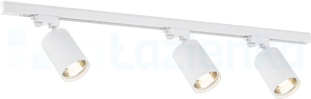 - Materiał: aluminium, stal szlachetna - Zasilanie: 230 V - Żarówki w zestawie: nie - Kolor: biały - Stopień ochrony: IP20 - Rodzaj gwintu: E27 - Wysokość: 18 cm - Szerokość: 106.5 cm - Moc żarówki: 15 W - Kształt: inny - Ilość punktów światła: 3 - Typ produktu: zestaw systemu szynowego